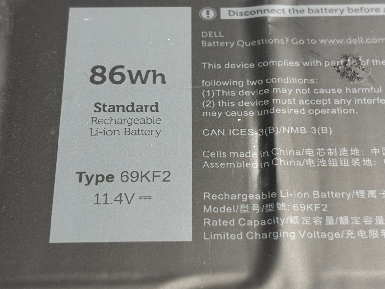 как выглядит Alienware M15 R7 M17 R4 Precision 5550 11.4V 86WH Laptop Battery Dell 69KF2 USED фото