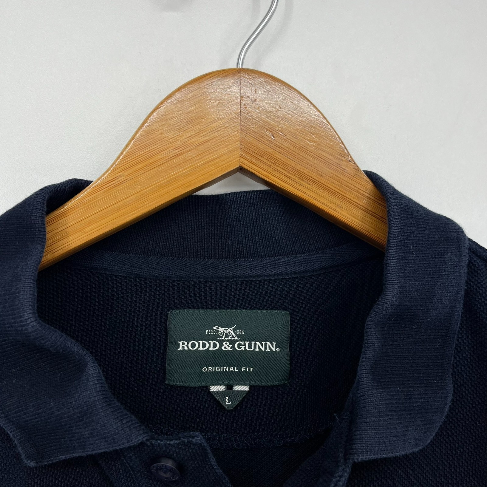 Rodd Gunn Polo Shirt Men's Size L Navy Blue Original Fit Logo Cotton