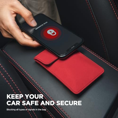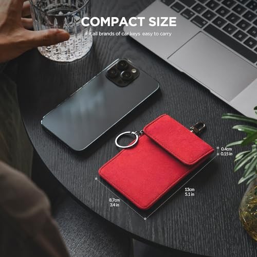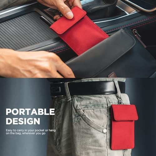 1 Pack Faraday Pouch for Key Fob, Car Key Signal Blocking Bag with Hook Red