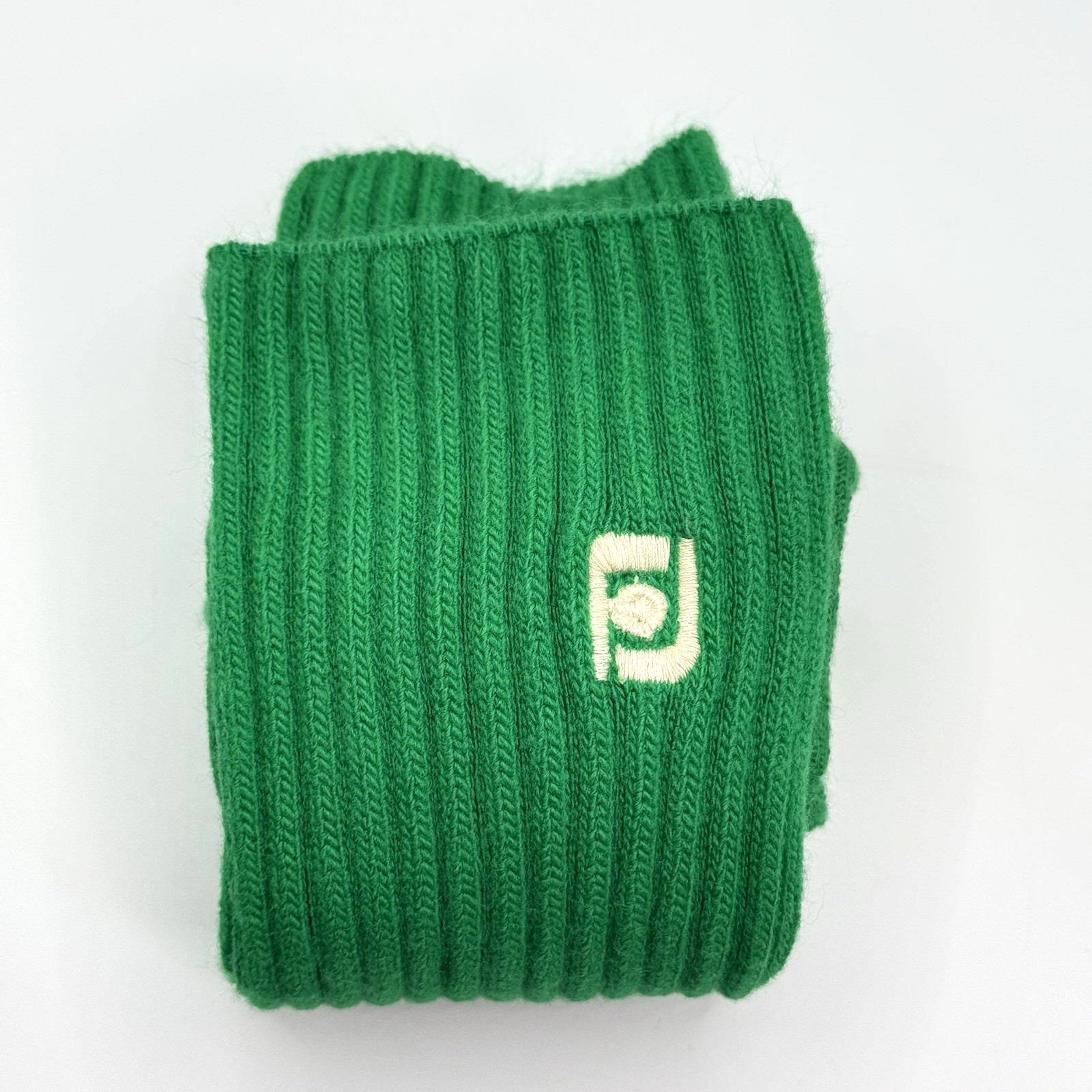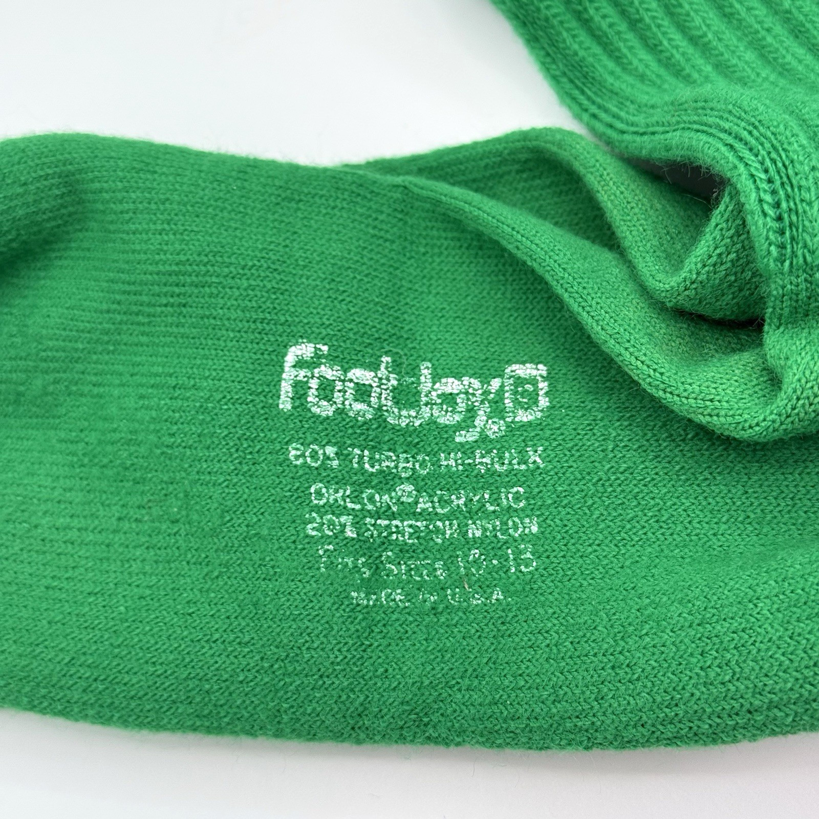 VTG FootJoy Green Ribbed Crew Socks USA Made White FJ Logo Turbo Hi-Bulk 15