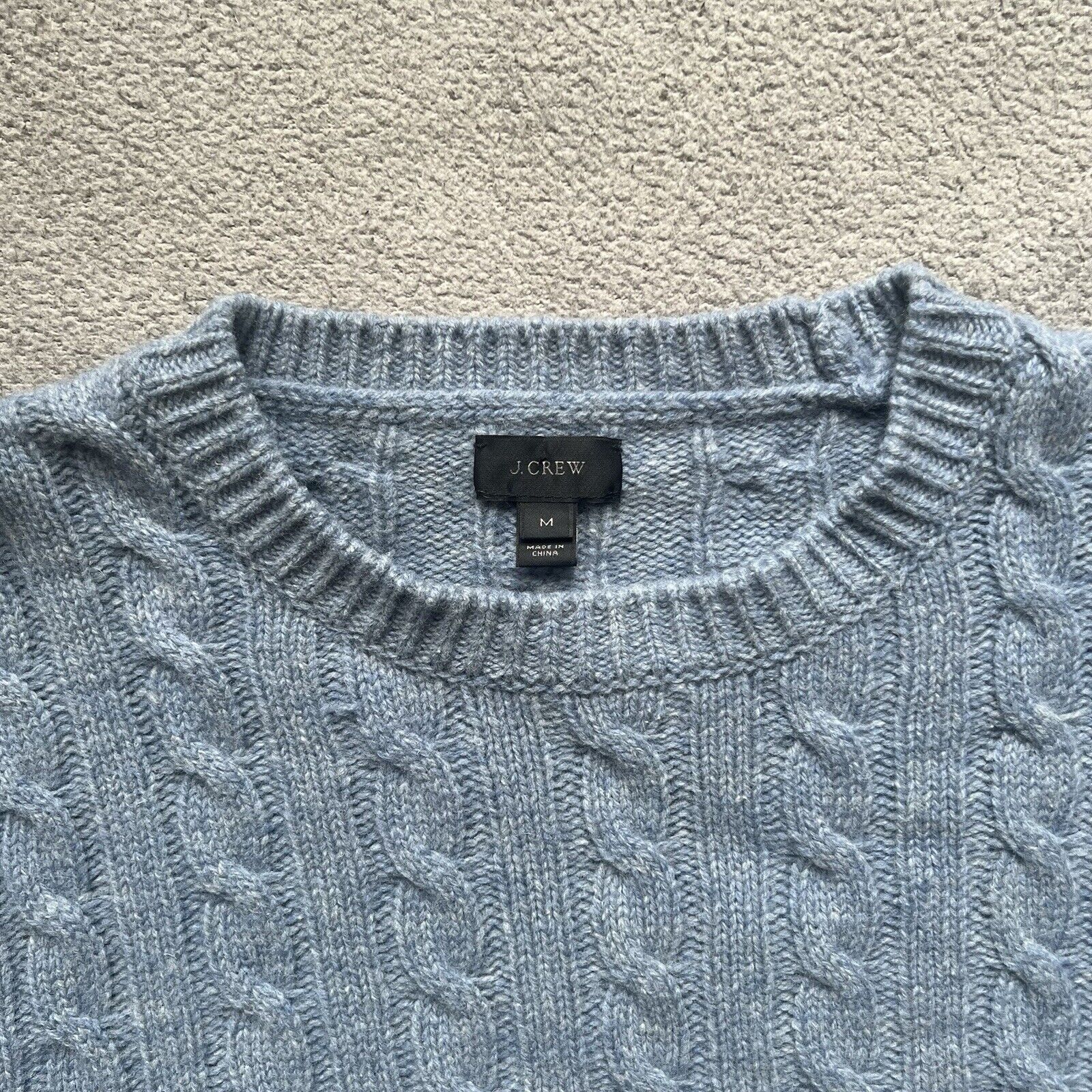 J Crew Sweater Mens Medium Blue Wool Pullover Long Sleeve Fisherman Cable Knit