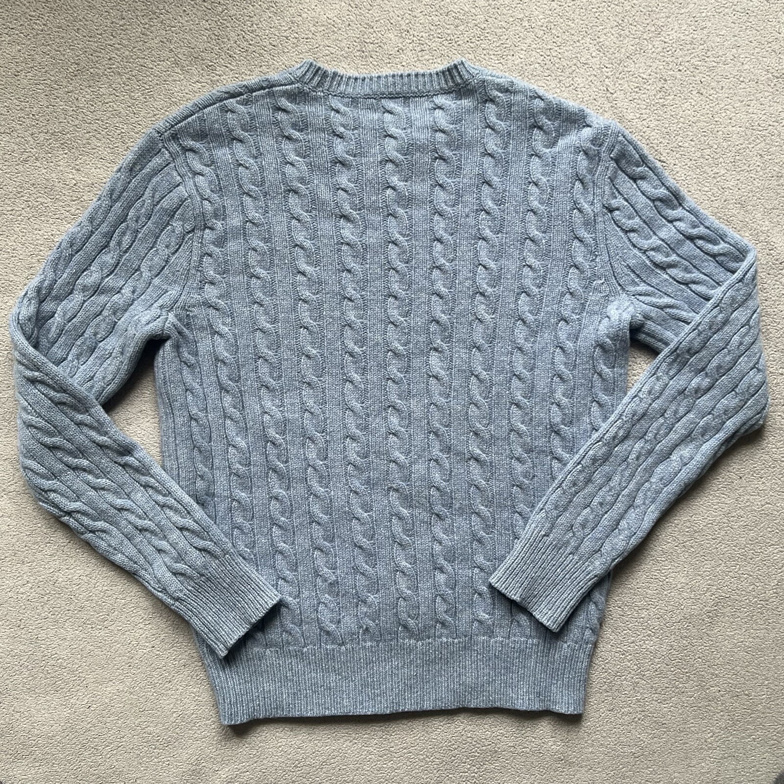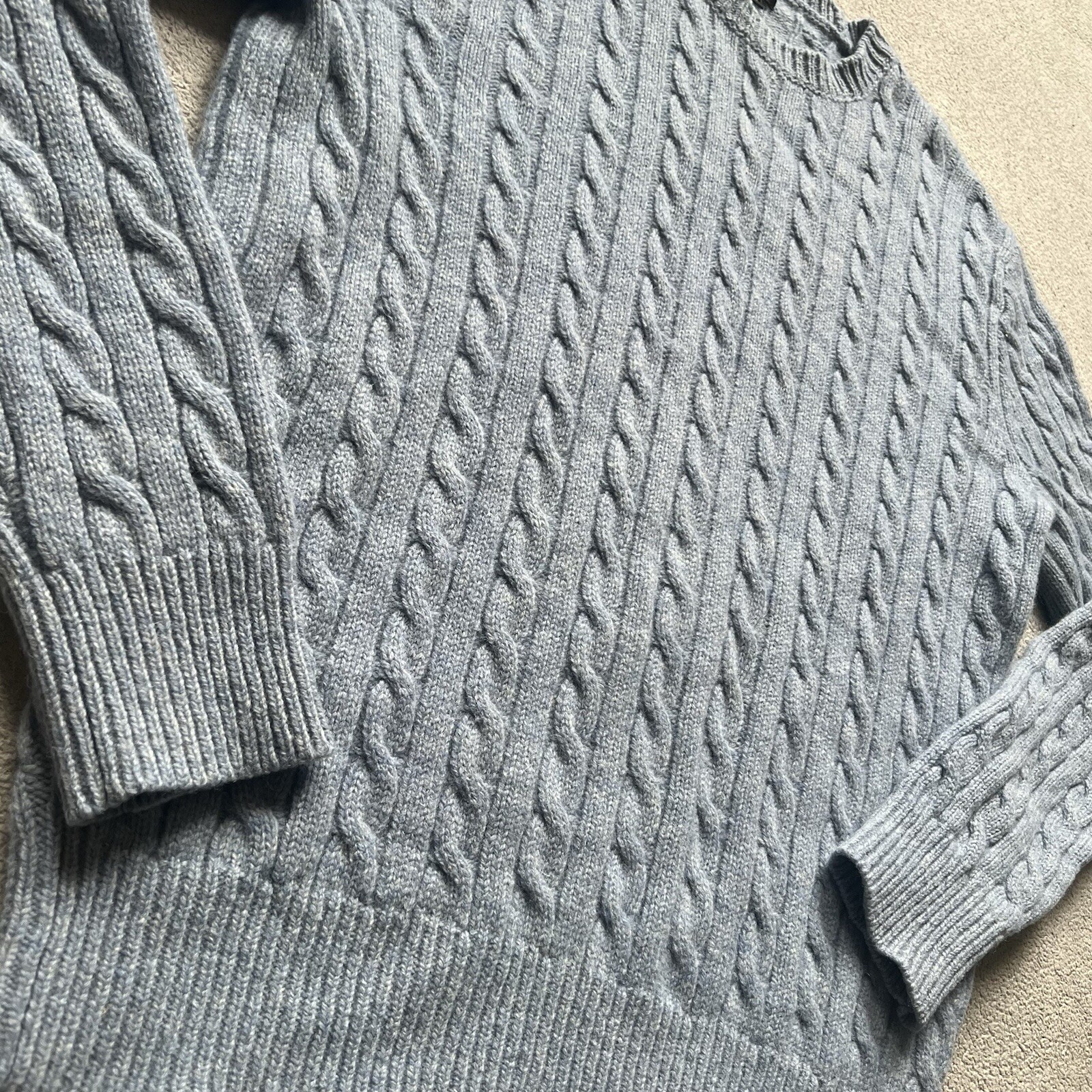 как выглядит J Crew Sweater Mens Medium Blue Wool Pullover Long Sleeve Fisherman Cable Knit фото