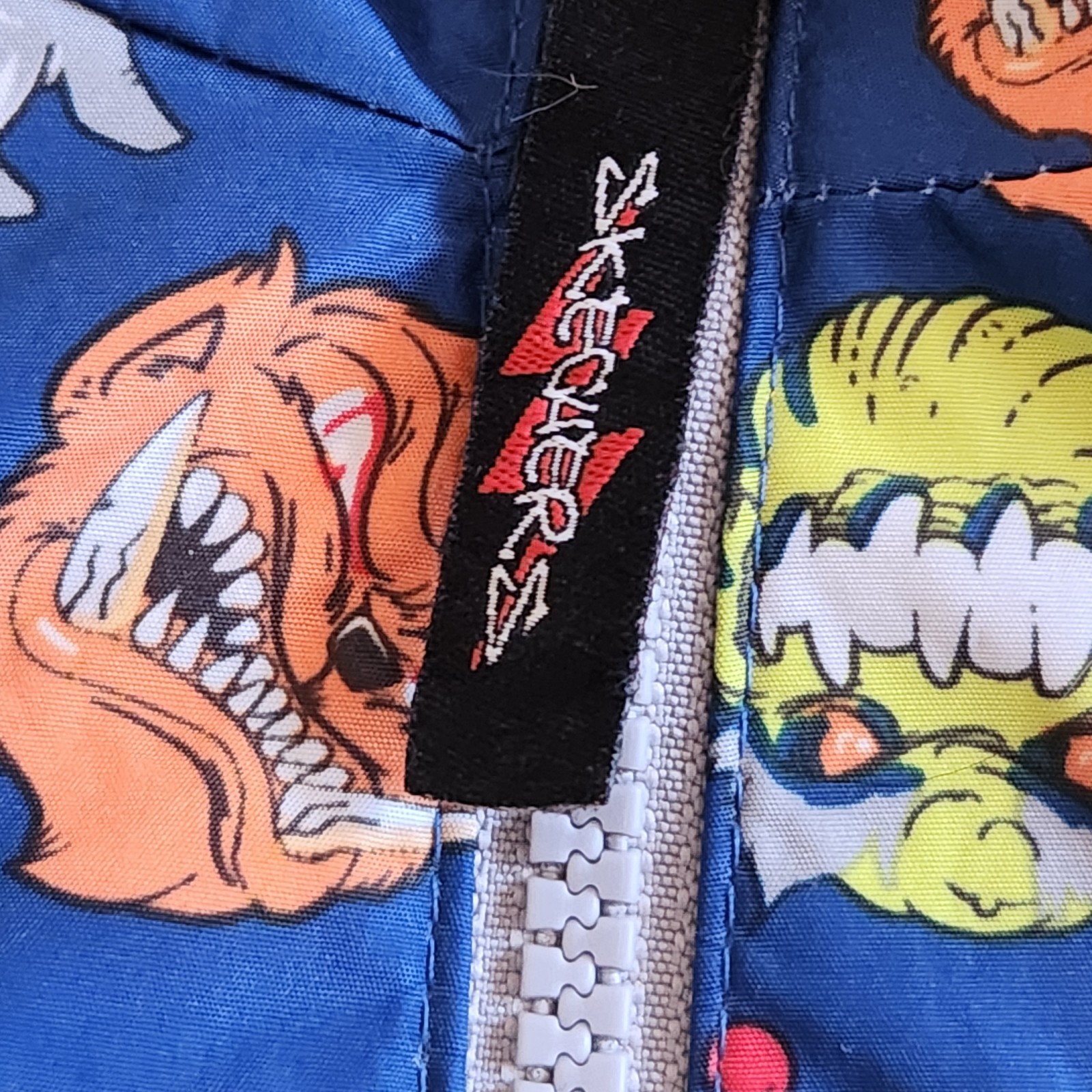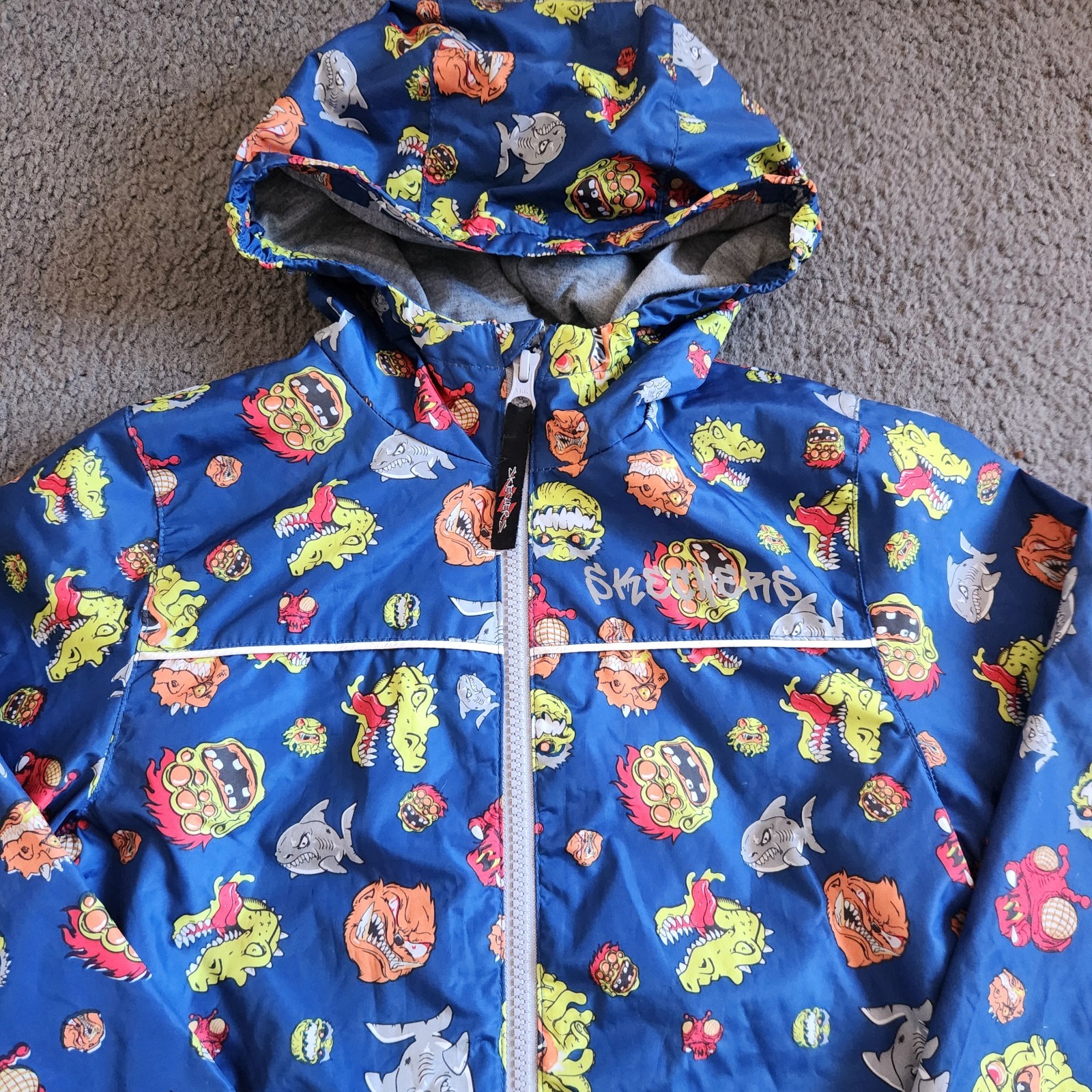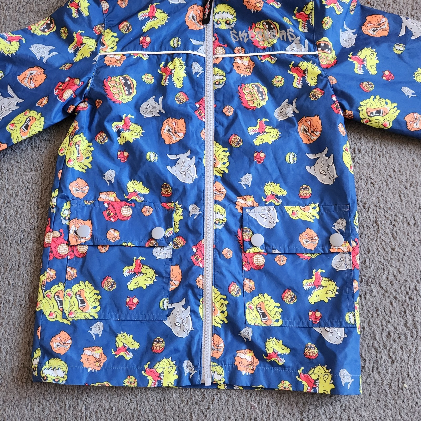 SKECHERS Kids Rain Jacket Size 7 Blue Monsters Hood Outerwear Full Zip