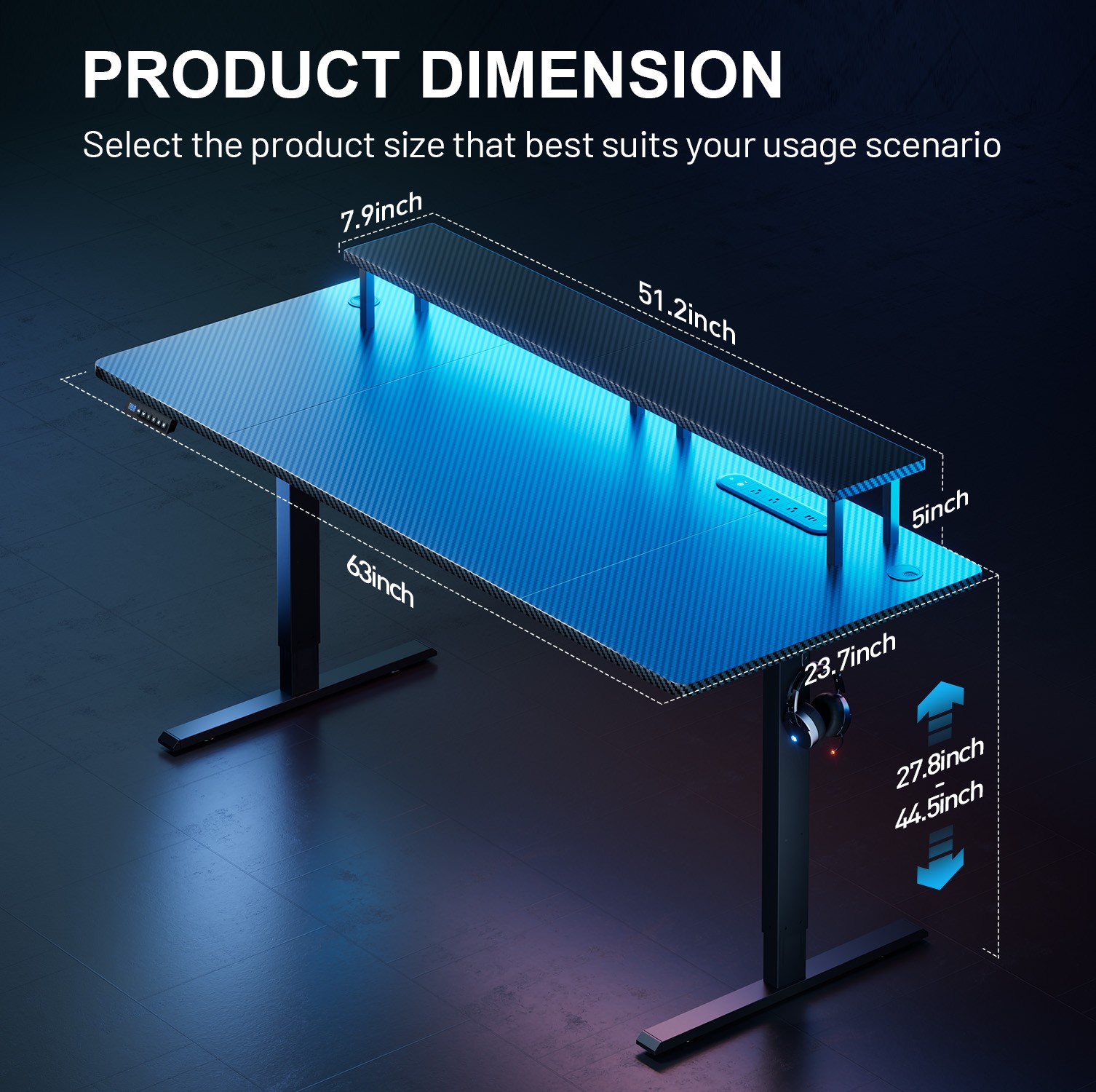 63'' Electric Standing Desk with RGB LED Monitor Stand, Height Adjustable Desk