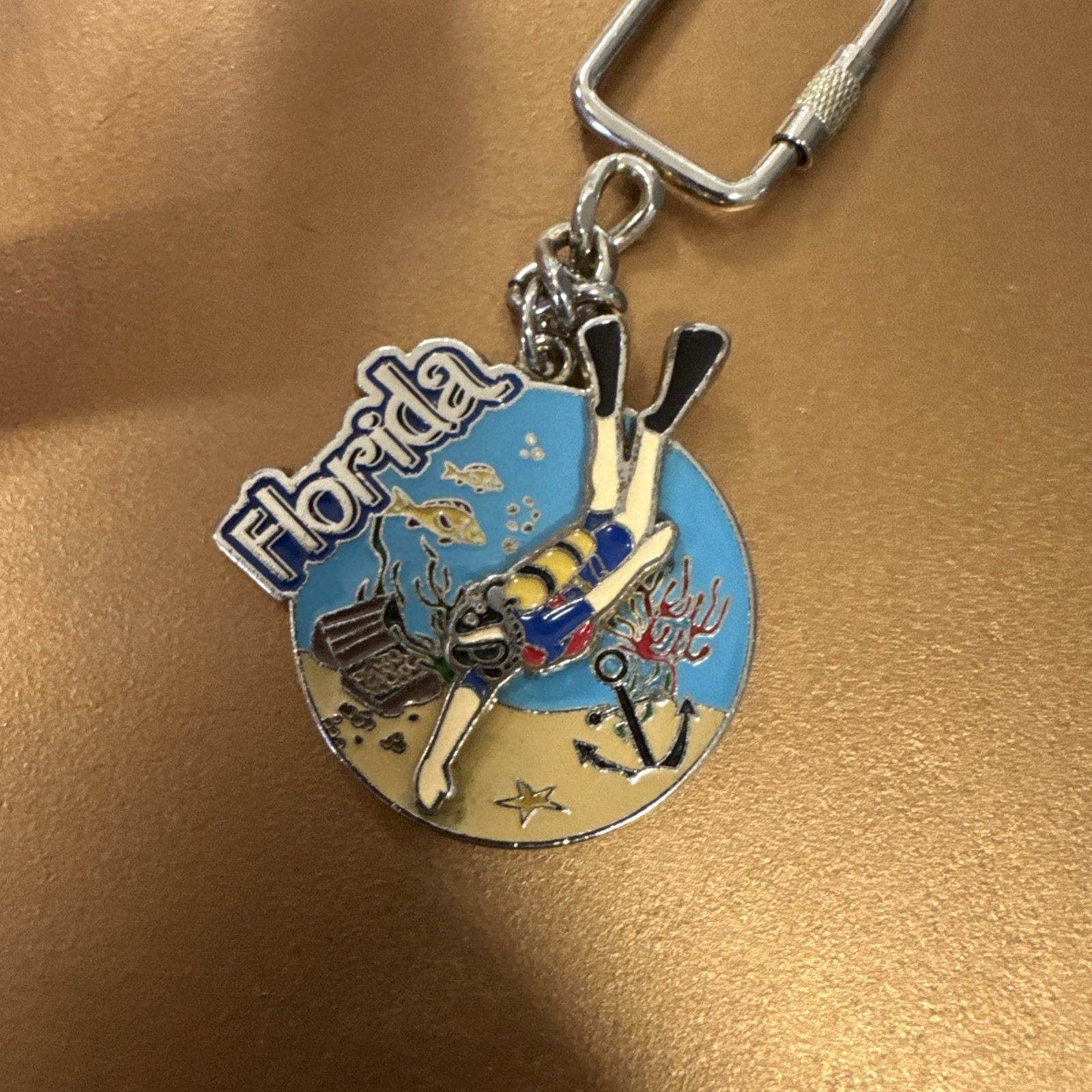 • FLORIDA SCUBA SCUBADIVING MOVABLE METAL KEY CHAIN KEY RING OCEAN SCENE