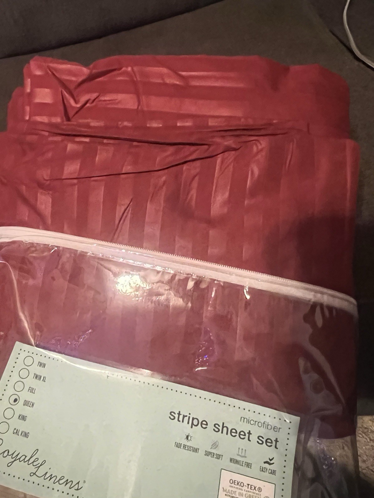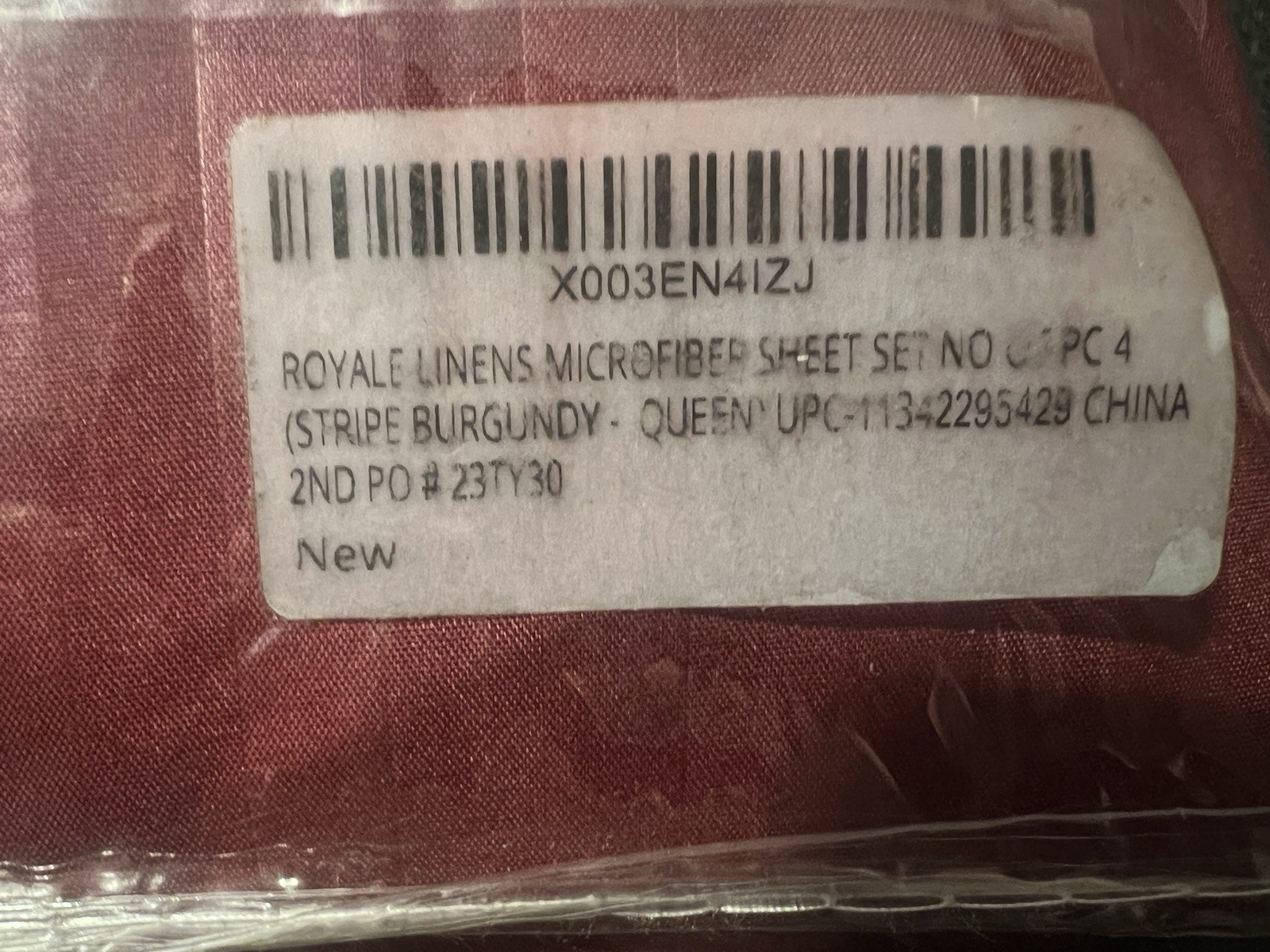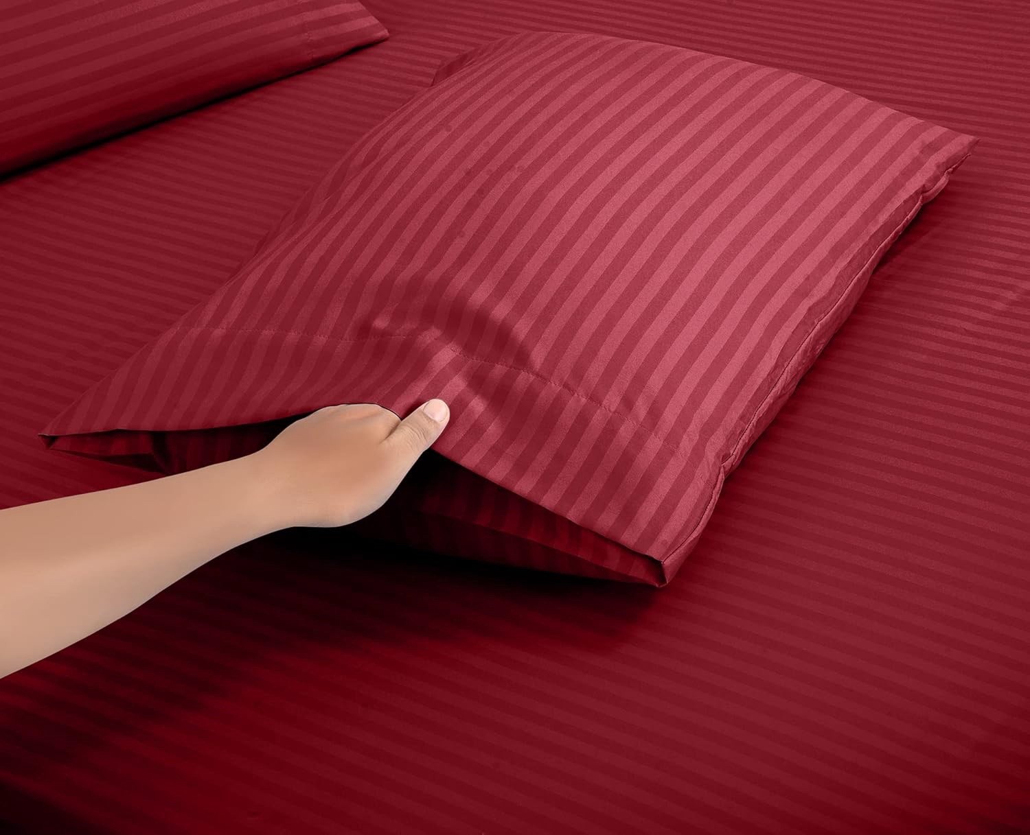 Royale Linens Queen Sheet Set Microfiber Striped Burgundy 4 Piece Set