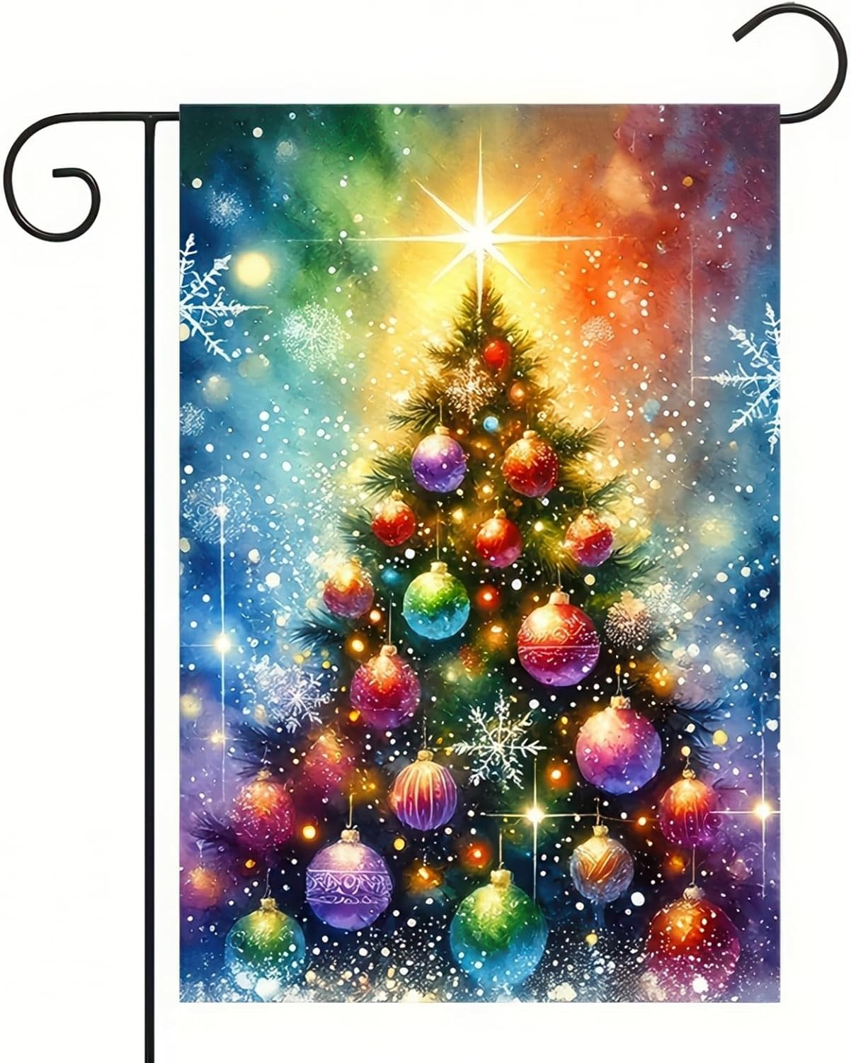 Christmas Tree Garden Flag 12X18 Inch Double Sided Holiday Colorful Ornaments St
