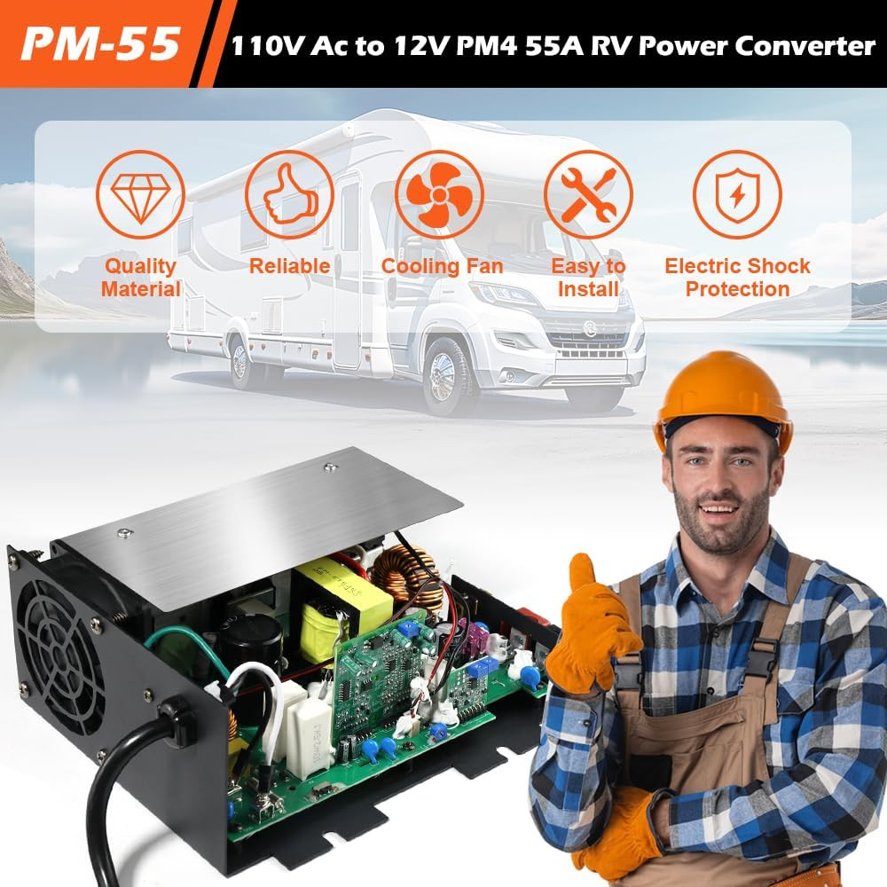 Pm4 55Amp Rv Power Converter with Automatic Three-Stage Battery Charging - Multi
