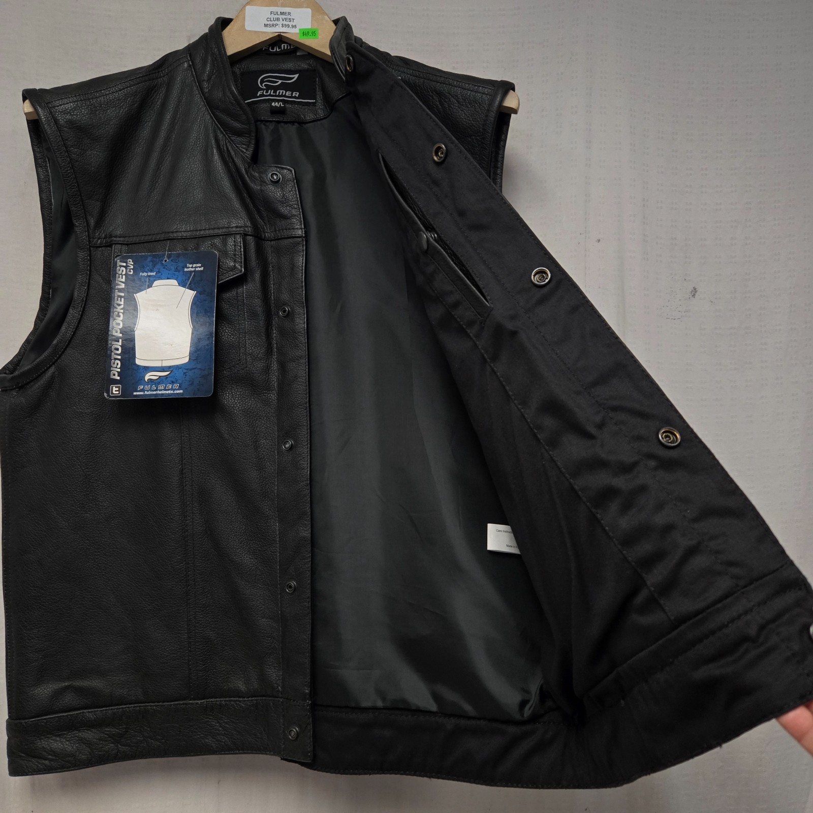 • Fulmer Club Pistol Leather Motorcycle Vest Black Large / 44 CLOSEOUT Was 99.95
