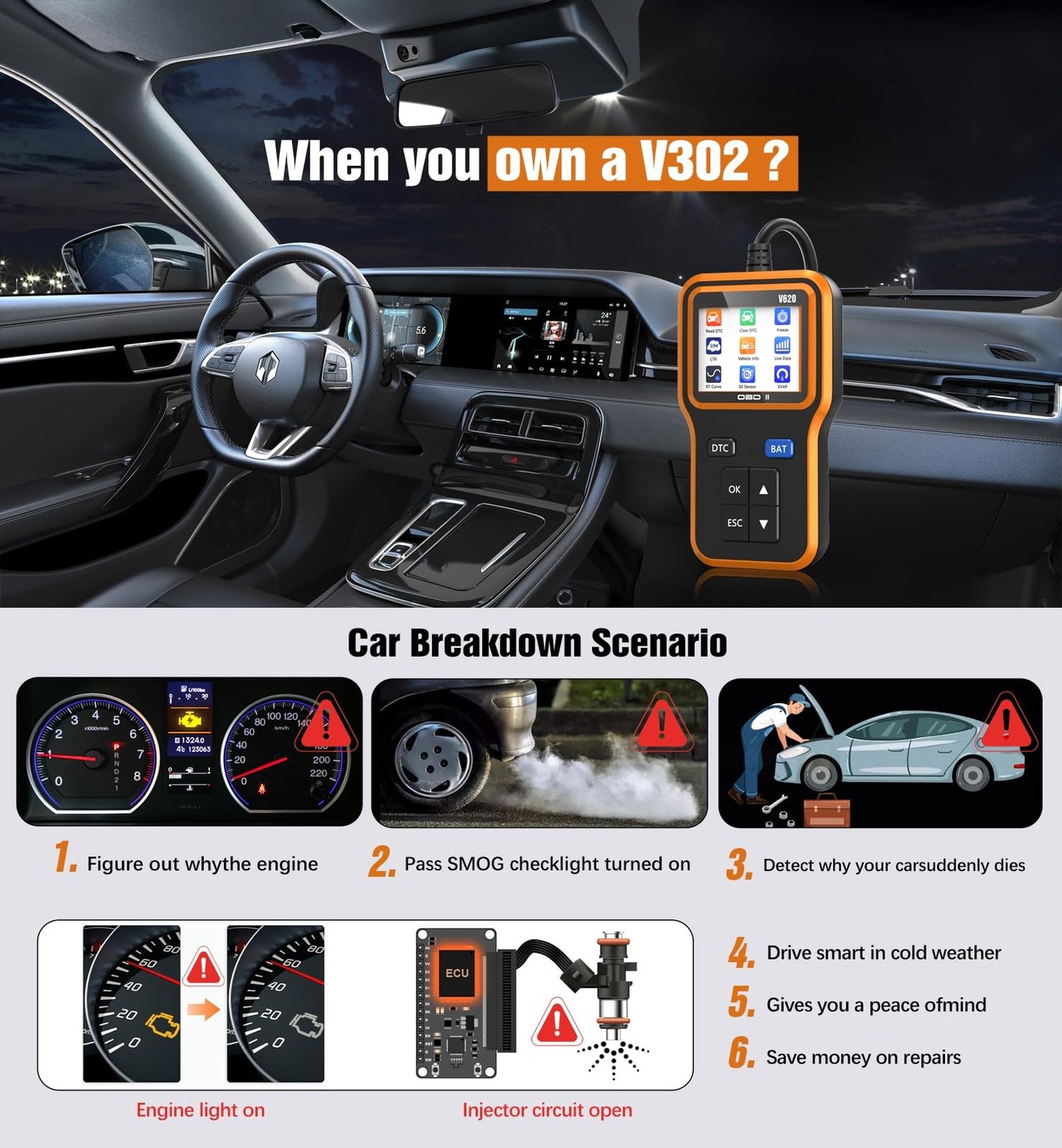 OBD2 Scanner with Upgrade Battery Tester - Diagnostic Tool for Cars That Chec...
