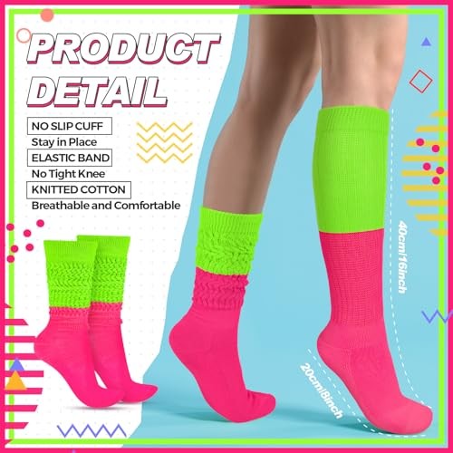 как выглядит Geyoga Neon Slouch Socks,80s 90s Neon Women