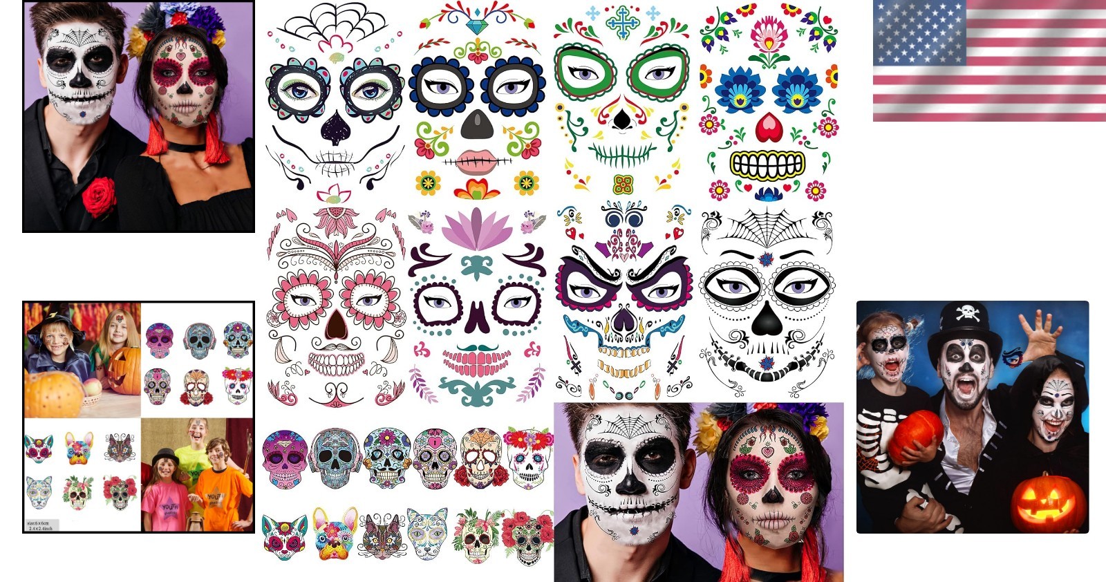 как выглядит Vibrant Sugar Skull Face Tattoos - Complete 20 Sheets for Day of the Dead Fun фото