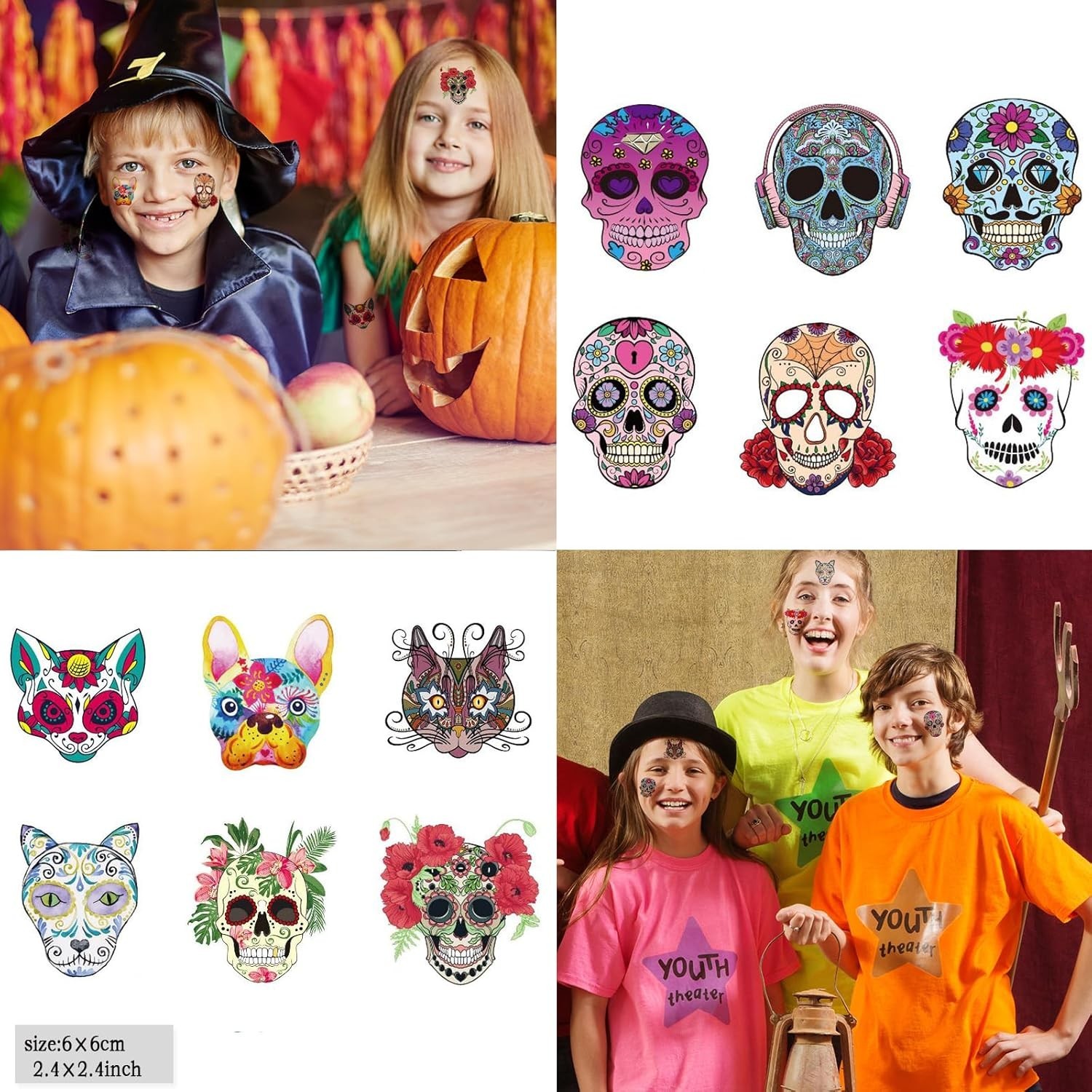 Vibrant Sugar Skull Face Tattoos - Complete 20 Sheets for Day of the Dead Fun