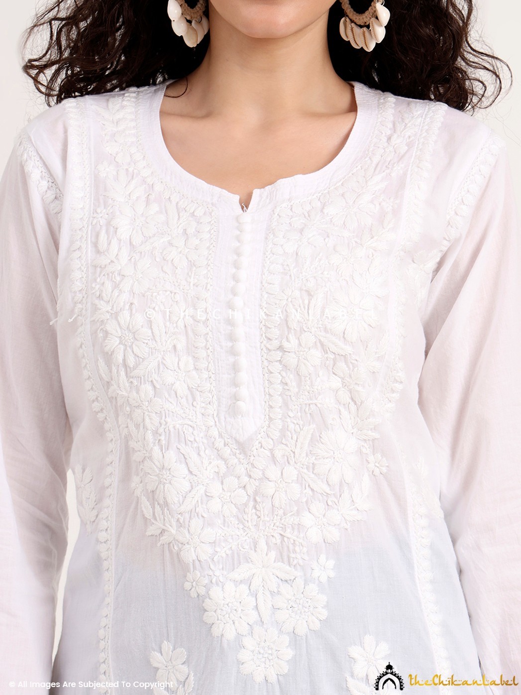 White Cotton Chikankari Straight Kurta, Lucknowi Chikan Handmade Women Kurti