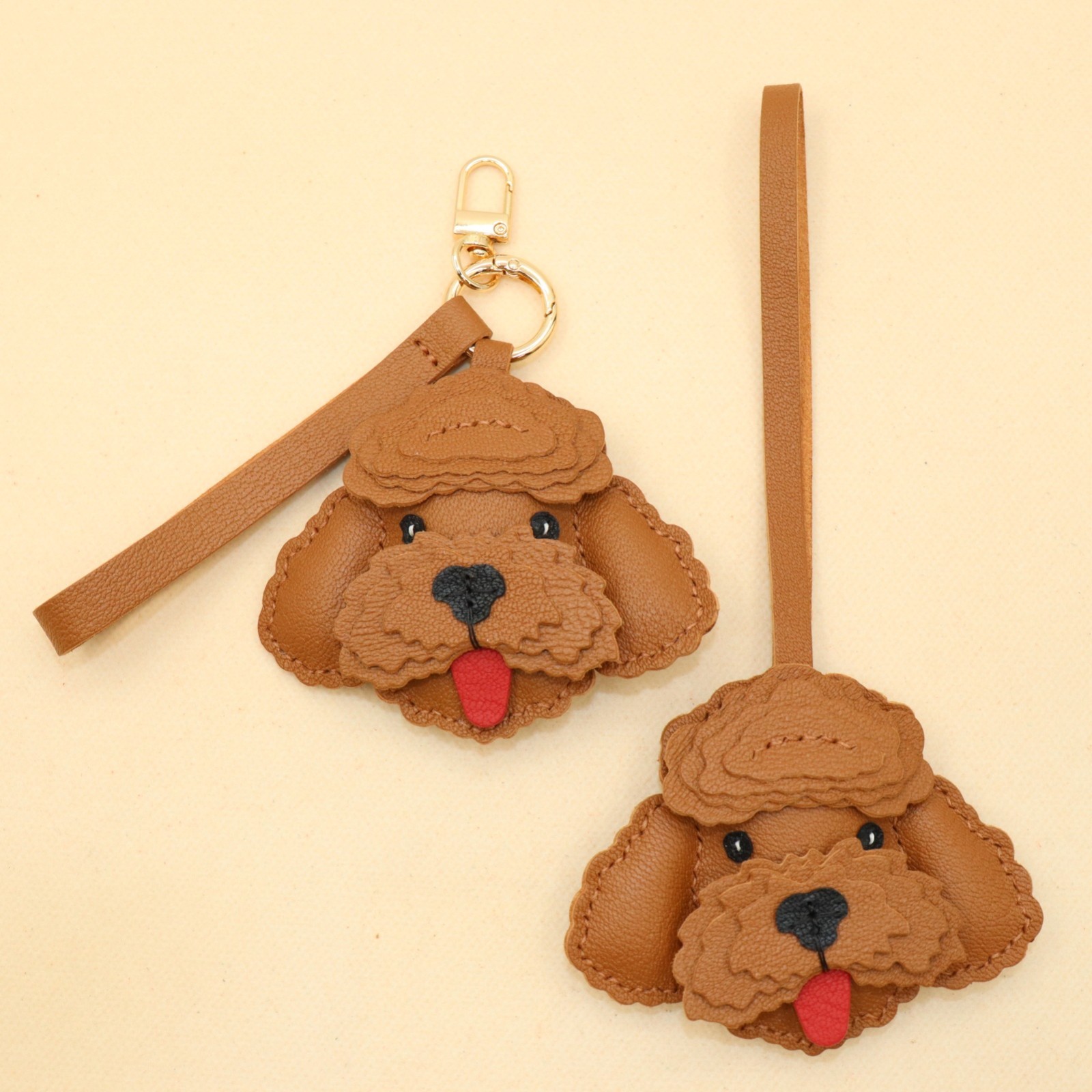 Handcrafted Brown Leather Poodle Dog Bag Charm, Cute Accessory for Handbag