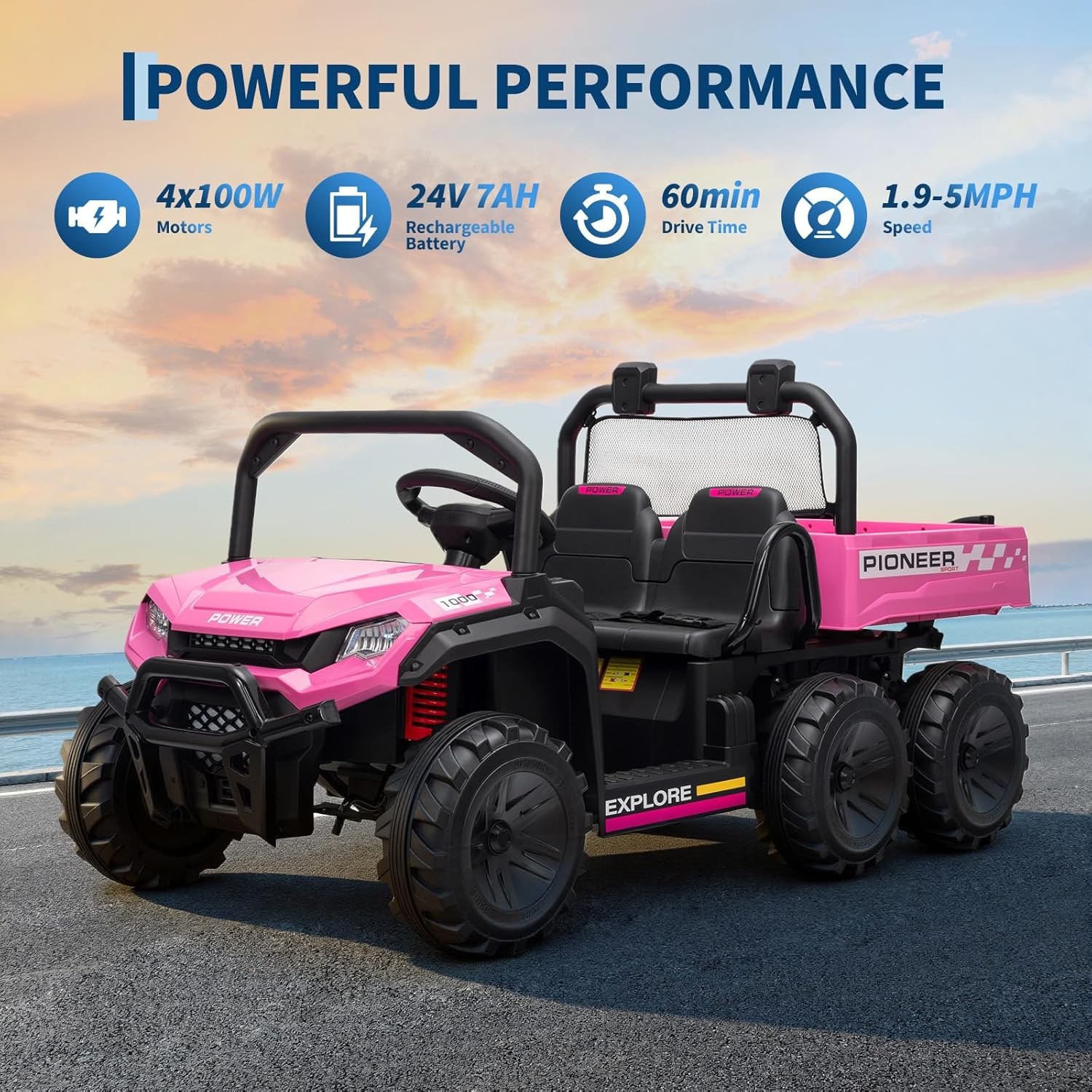 Kids 2 Seater Ride on Car 24V Electric Dump Truck 4WD Off-road UTV w/Remote MP3