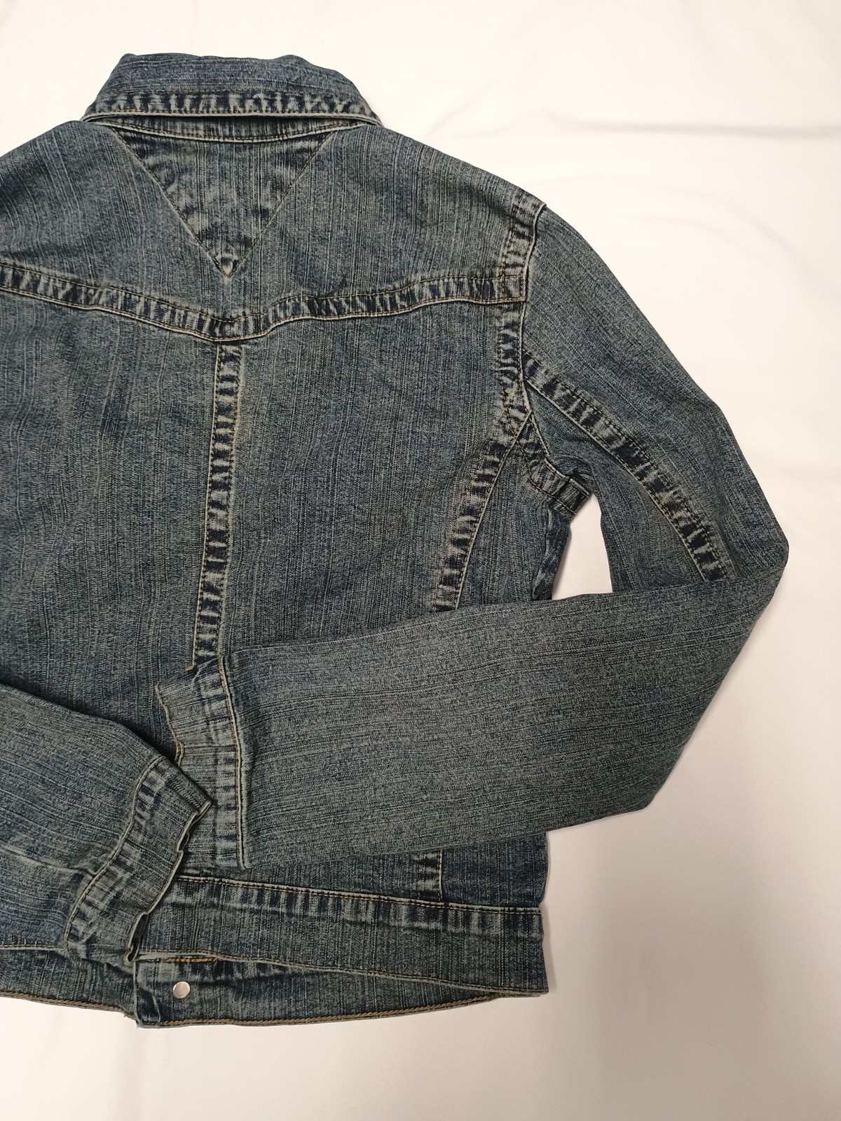 как выглядит Girls Tommy Jeans Collared Stretch Button Up Denim Jacket Tag Size Large фото
