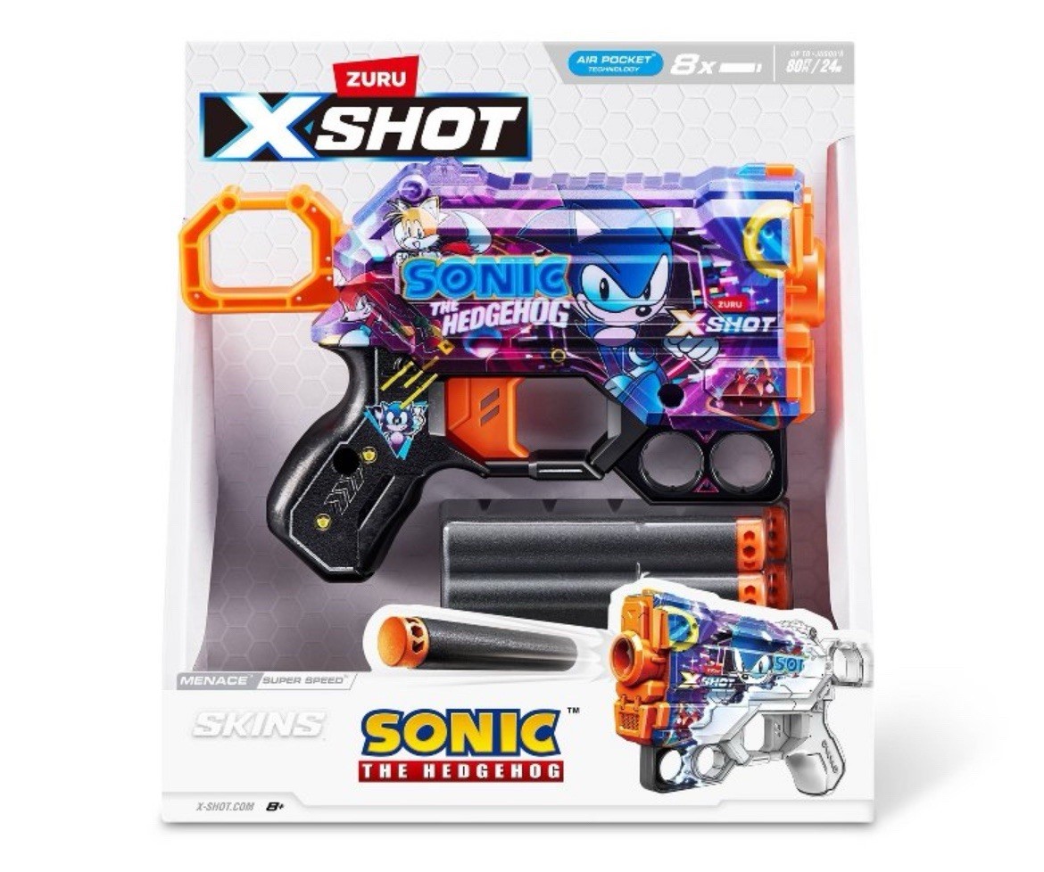 как выглядит XShot Skins Super Speed Menance Sonic Toy Dart Blaster, 8 Darts Included фото
