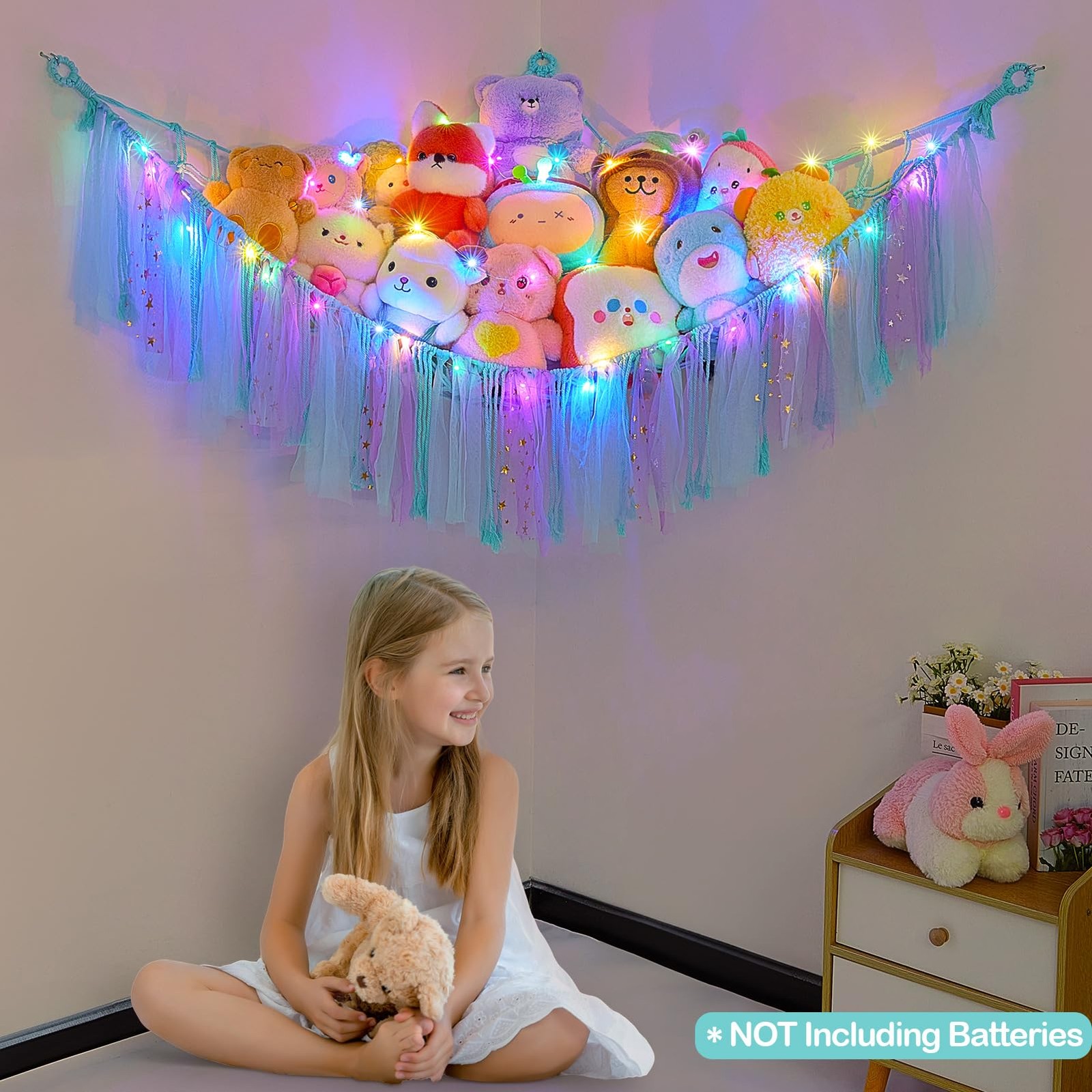 Stuffed Animals Net or Hammock with LED Light, Toy Hammock Hanging Stuffed An...