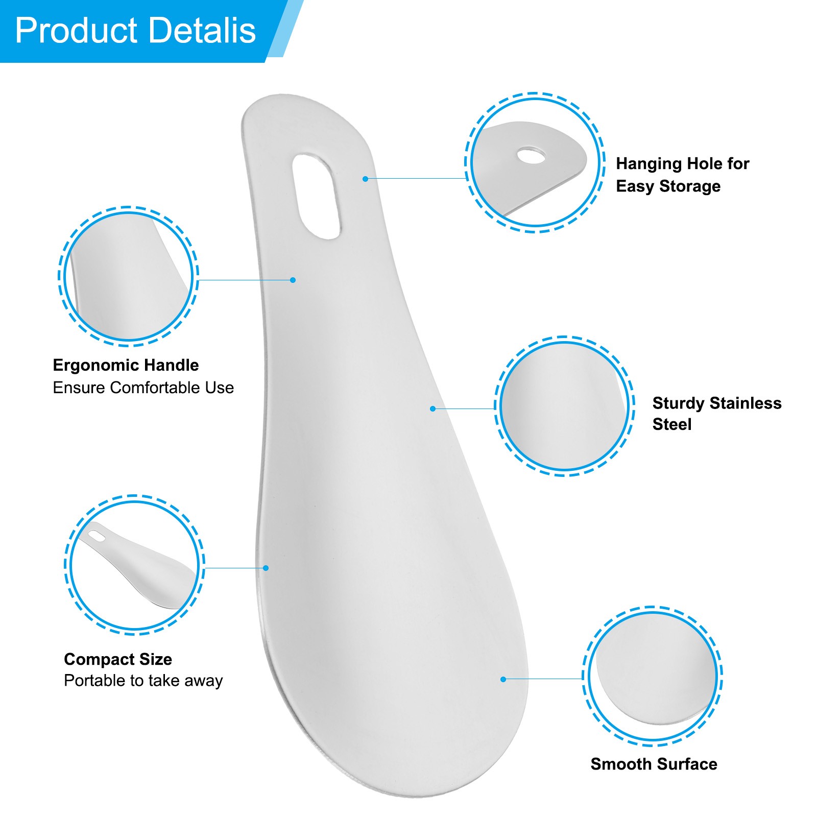 4in Shoe Horn, 2Pcs Metal Shoe Helper, Silver Tone
