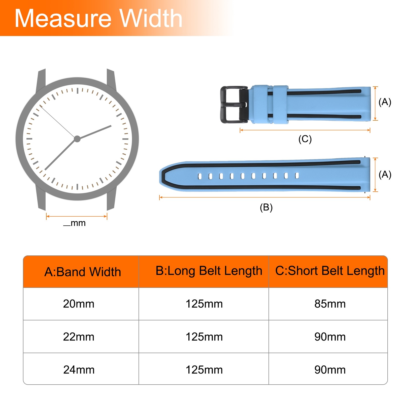 Silicone Watch Bands 24mm Soft Watch Bands with Frosted Buckle, Light Blue Black