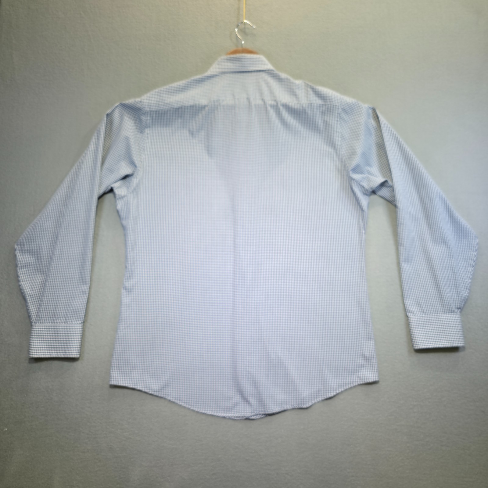 Geoffrey Beene Fitted Men's Blue Check Wrinkle Free Dress Shirt Size 16-34/35