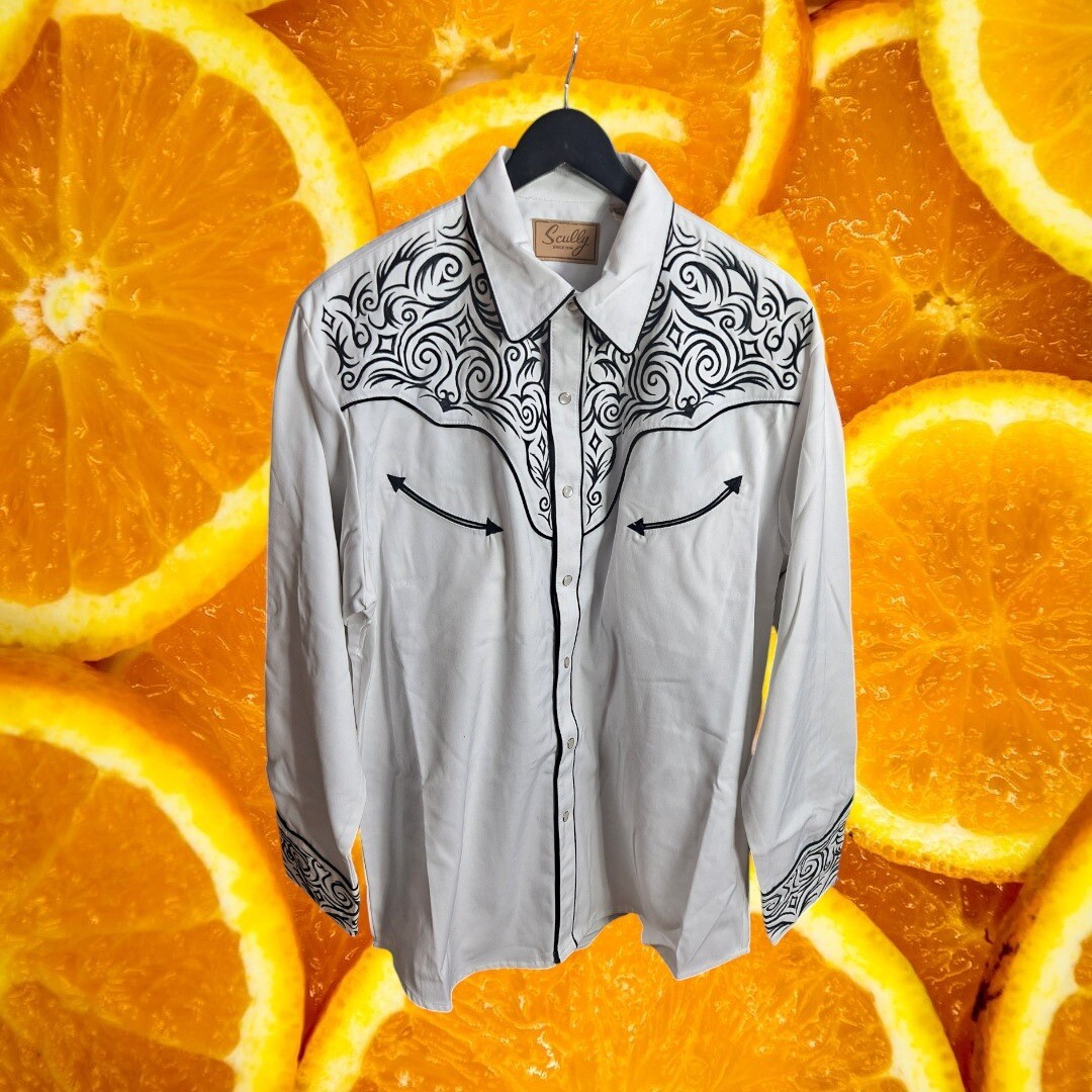 Scully Western Shirt Embroidered Scrollwork Cowboy Rodeo Long Sleeve Large