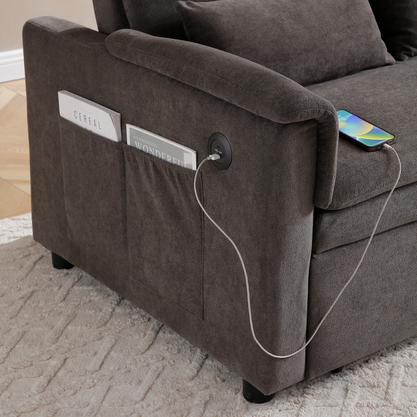 Особенности: Convertible, Storage, Adjustable Backrest, USB Charging Ports, Space Saving