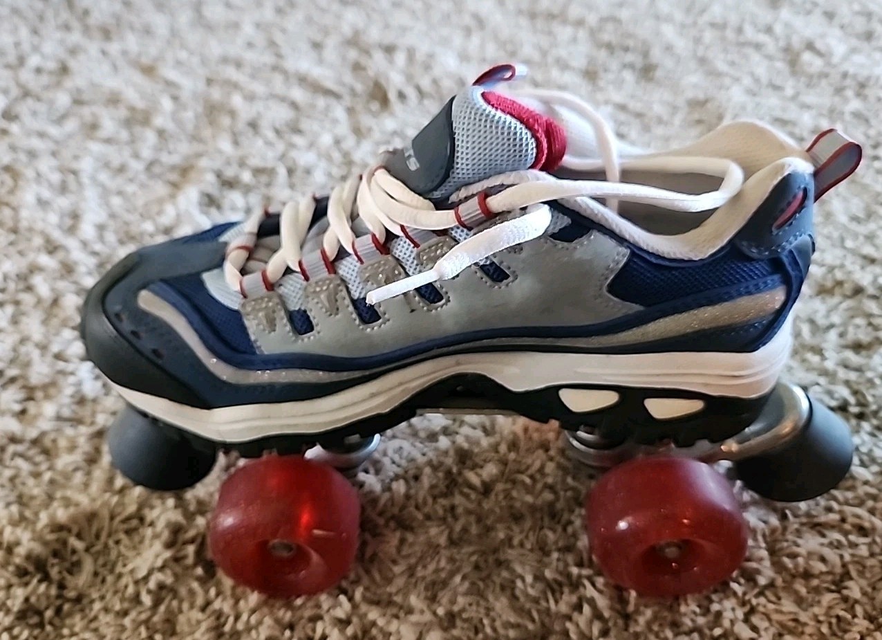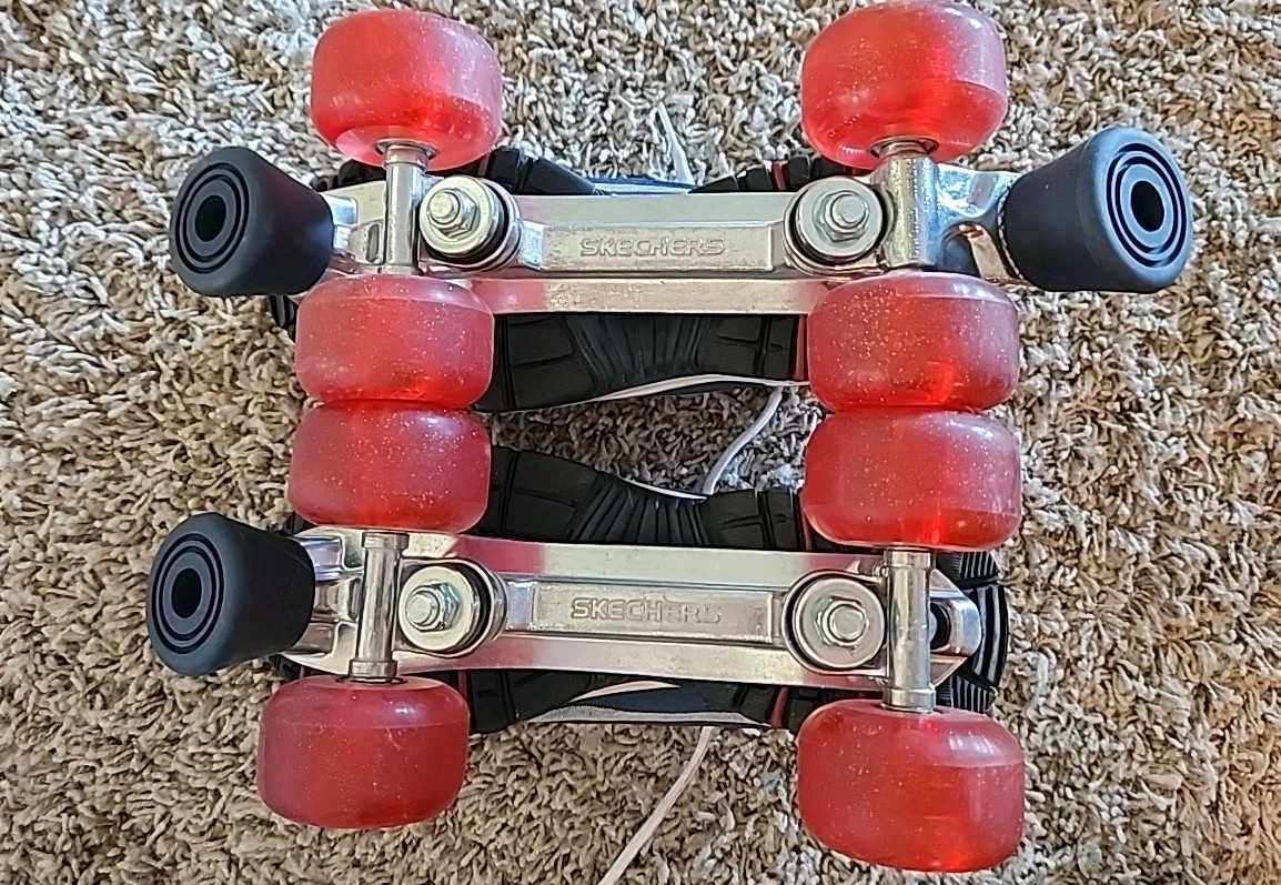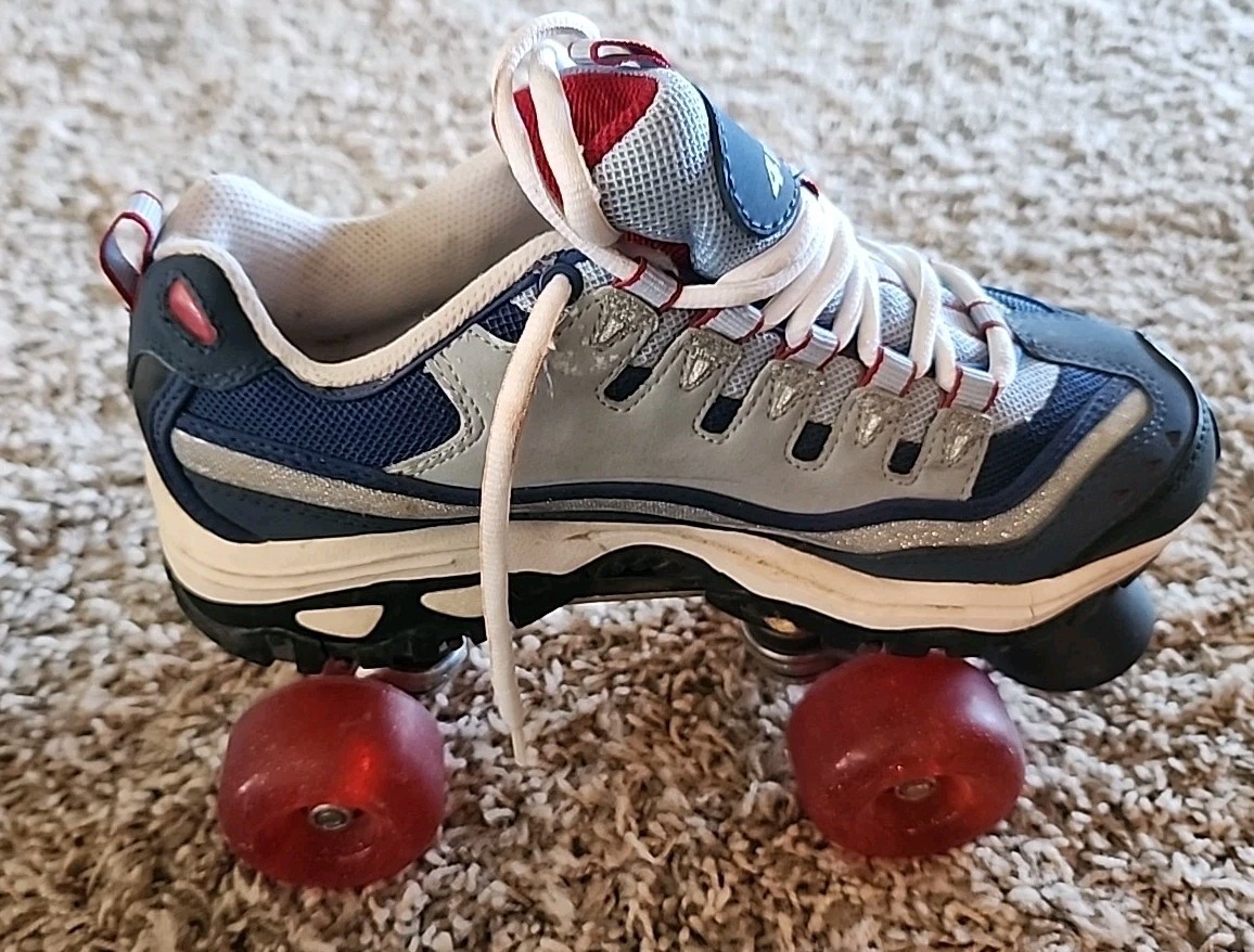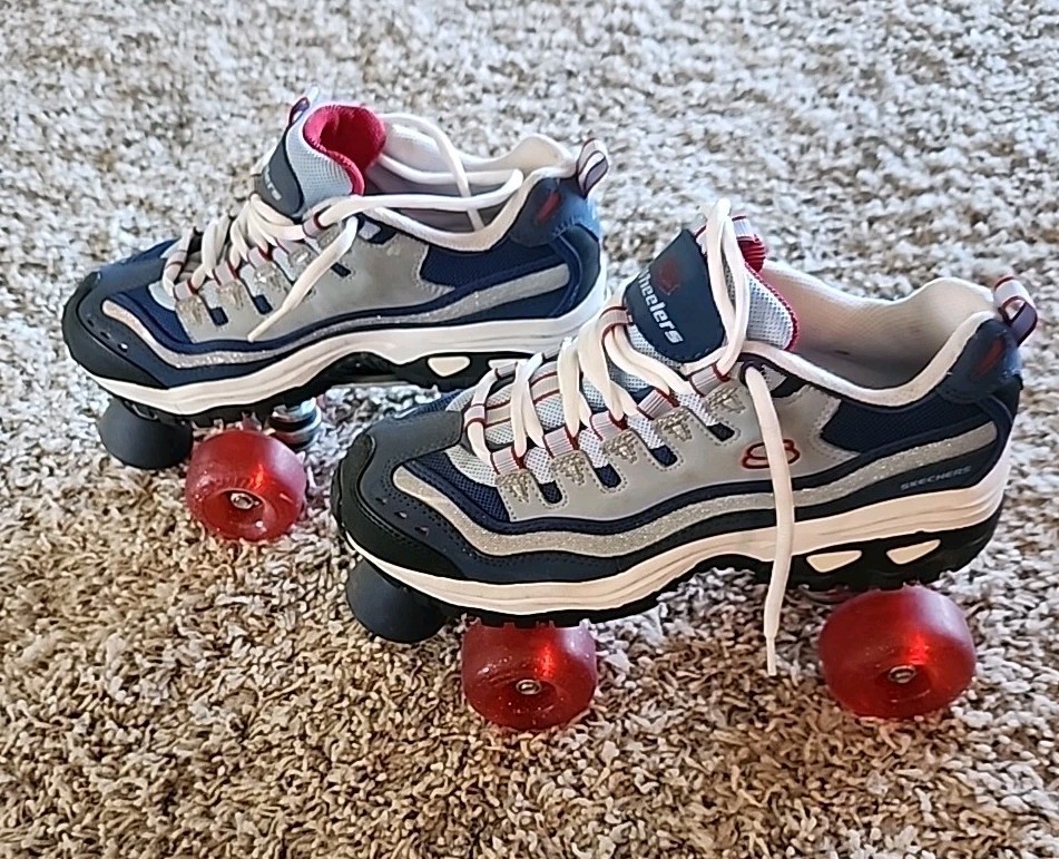 Sketchers 4-Wheelers Roller Skates Women s 8.5; Blue Red Sparkle, Worn Once