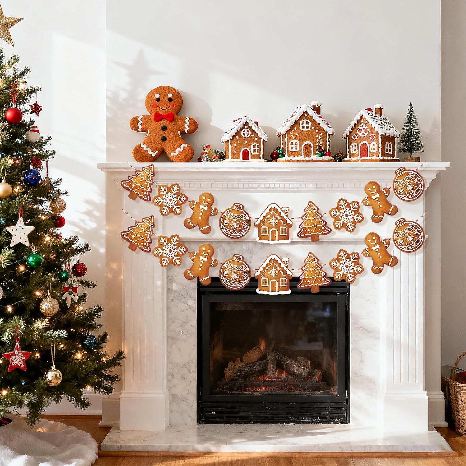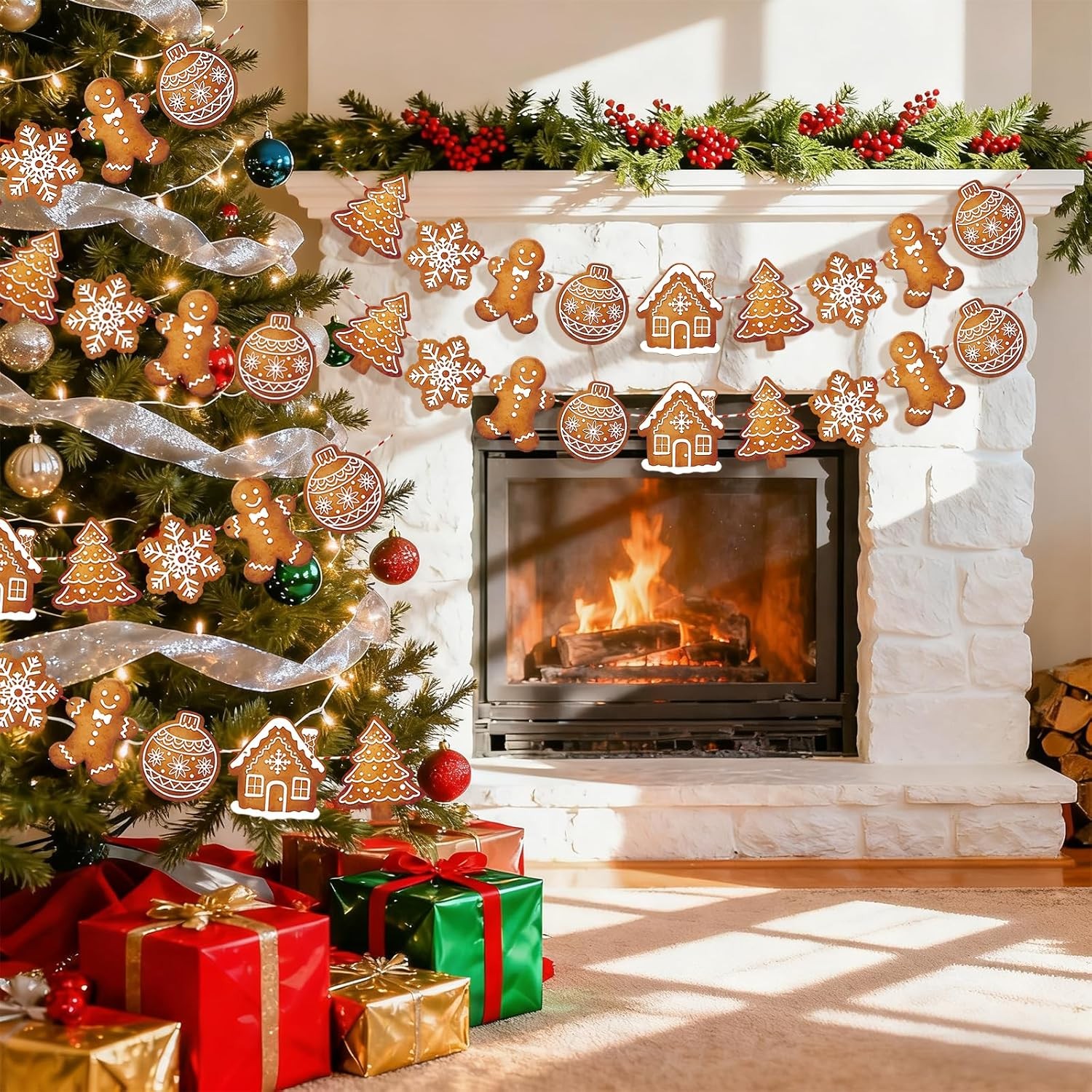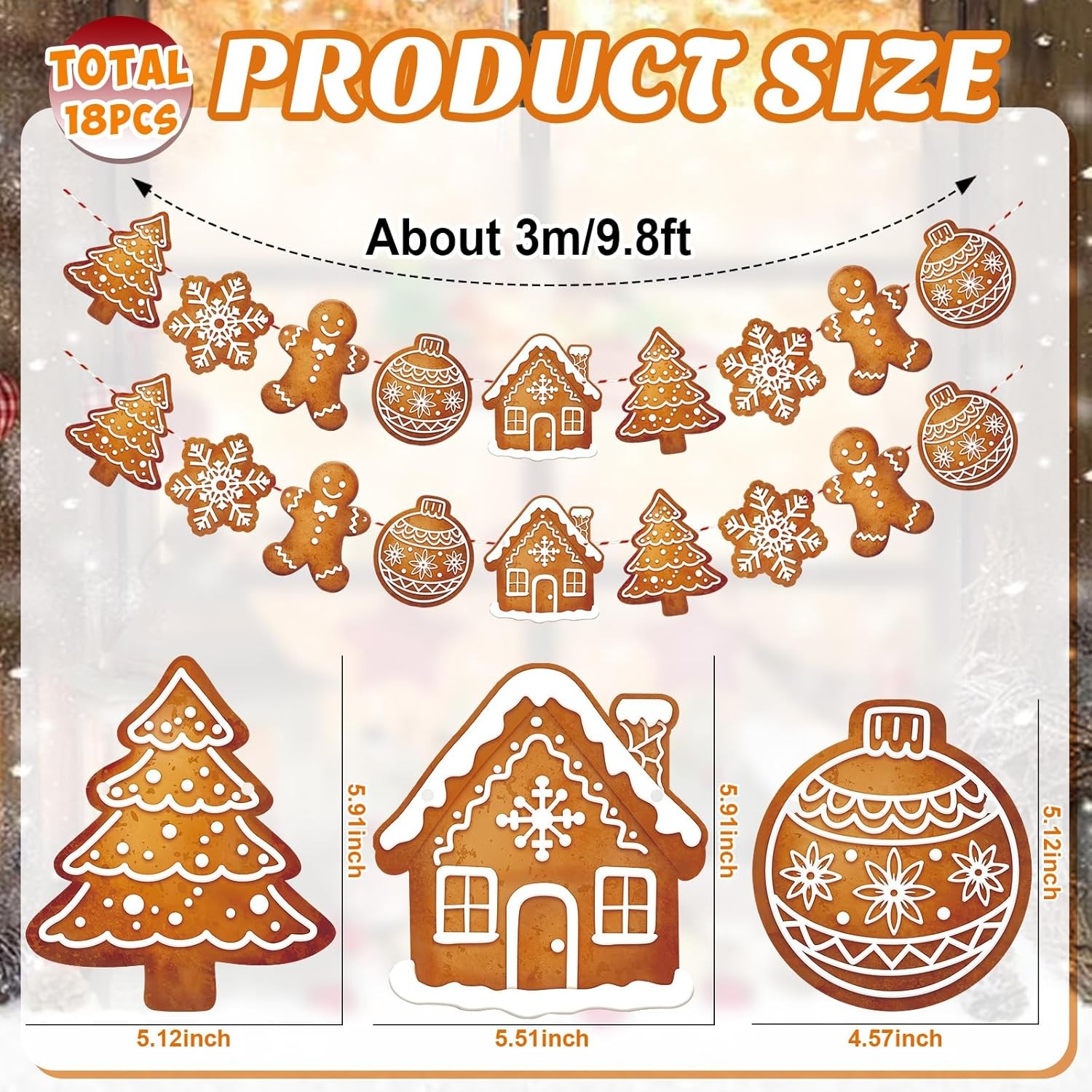 2 Pack Christmas Gingerbread Theme Garland Banner Large, Yellow