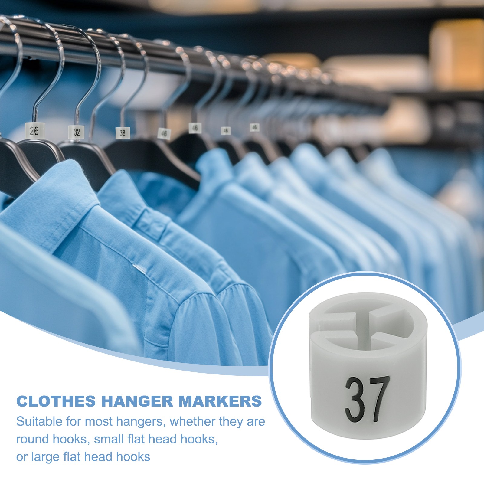 как выглядит 100 Pcs Clothes Hanger Marker Number 37 Tag Fit 3mm Rod Garment Size Tag Gray фото