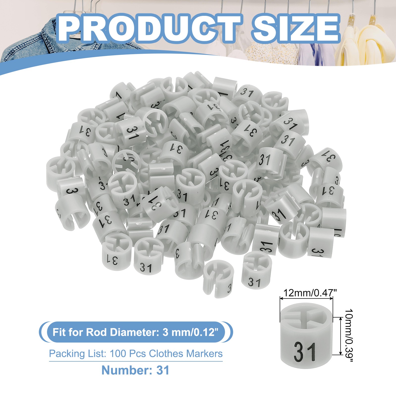 100 Pcs Clothes Hanger Marker Number 31 Tag Fit 3mm Rod Garment Size Tag Gray