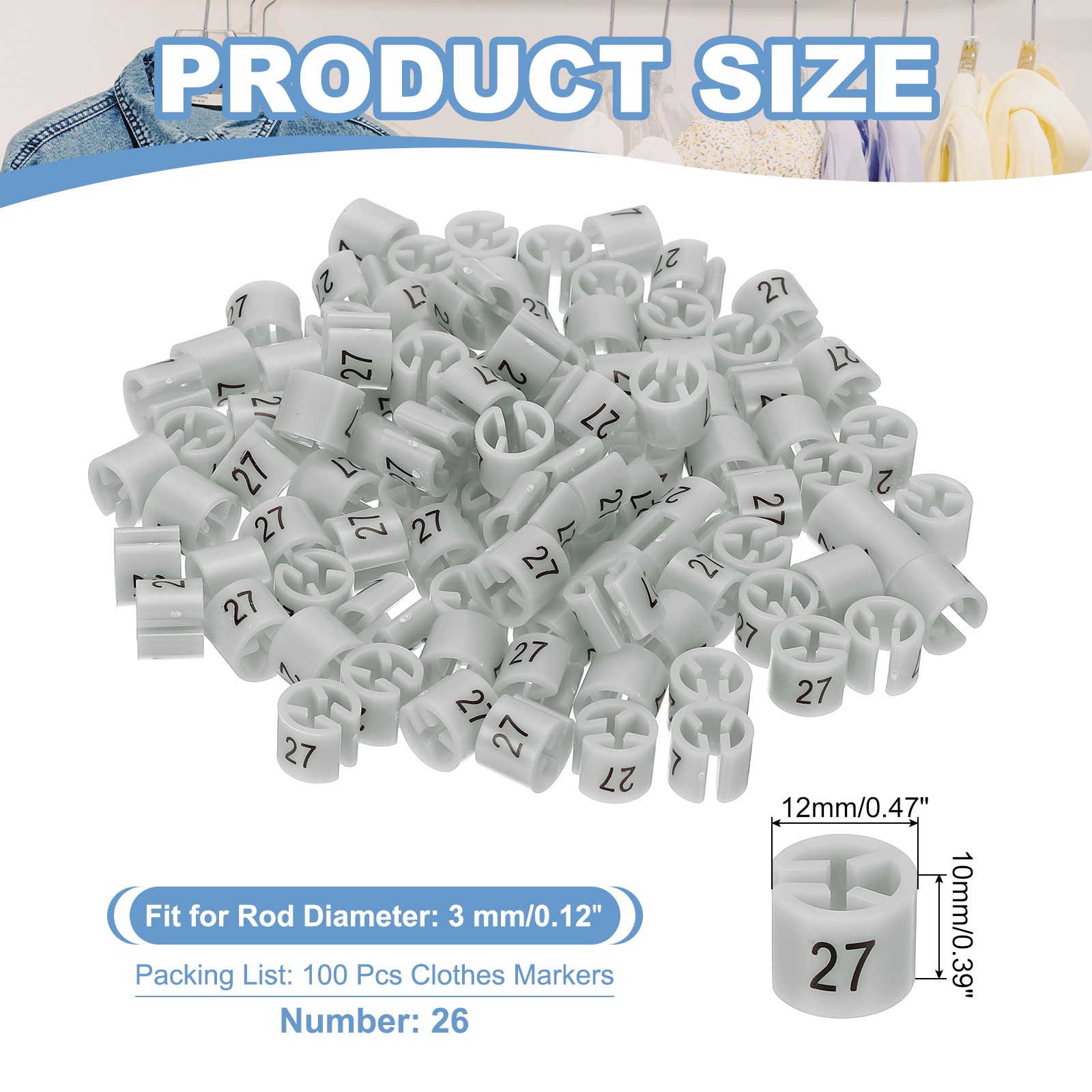 100 Pcs Clothes Hanger Marker Number 27 Tag Fit 3mm Rod Garment Size Tag Gray