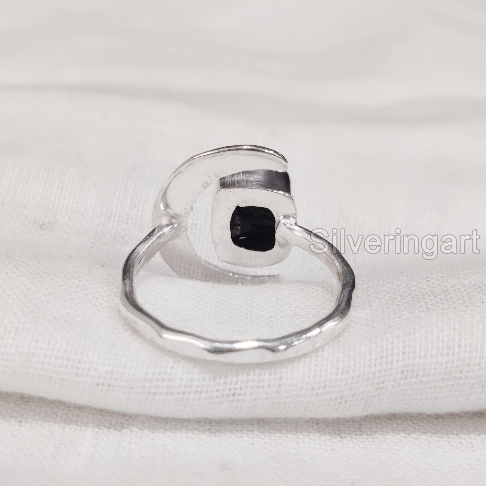 Natural Black Tourmaline Ring, Rough Tourmaline Crescent Moon Adjustable Ring...