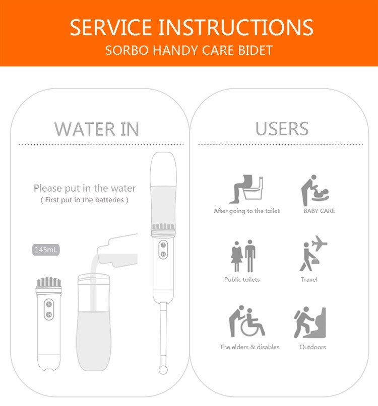 Type 2: Electric Travel Bidet Sprayer,IPX7 Waterproof