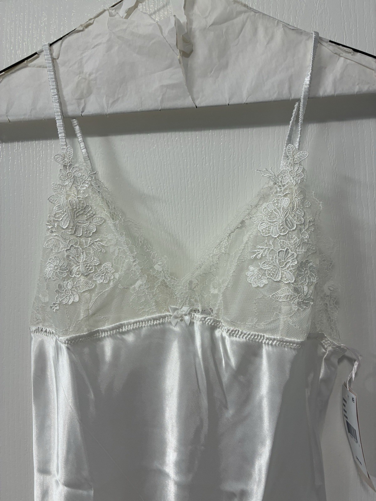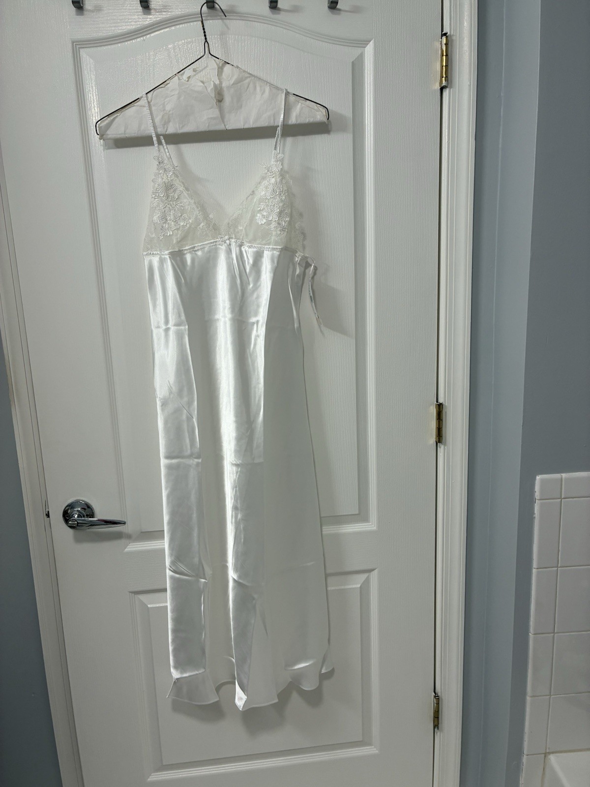 Linea Donatella White Satin Lace Nightgown Slip Dress- Bridal Lingerie Size M