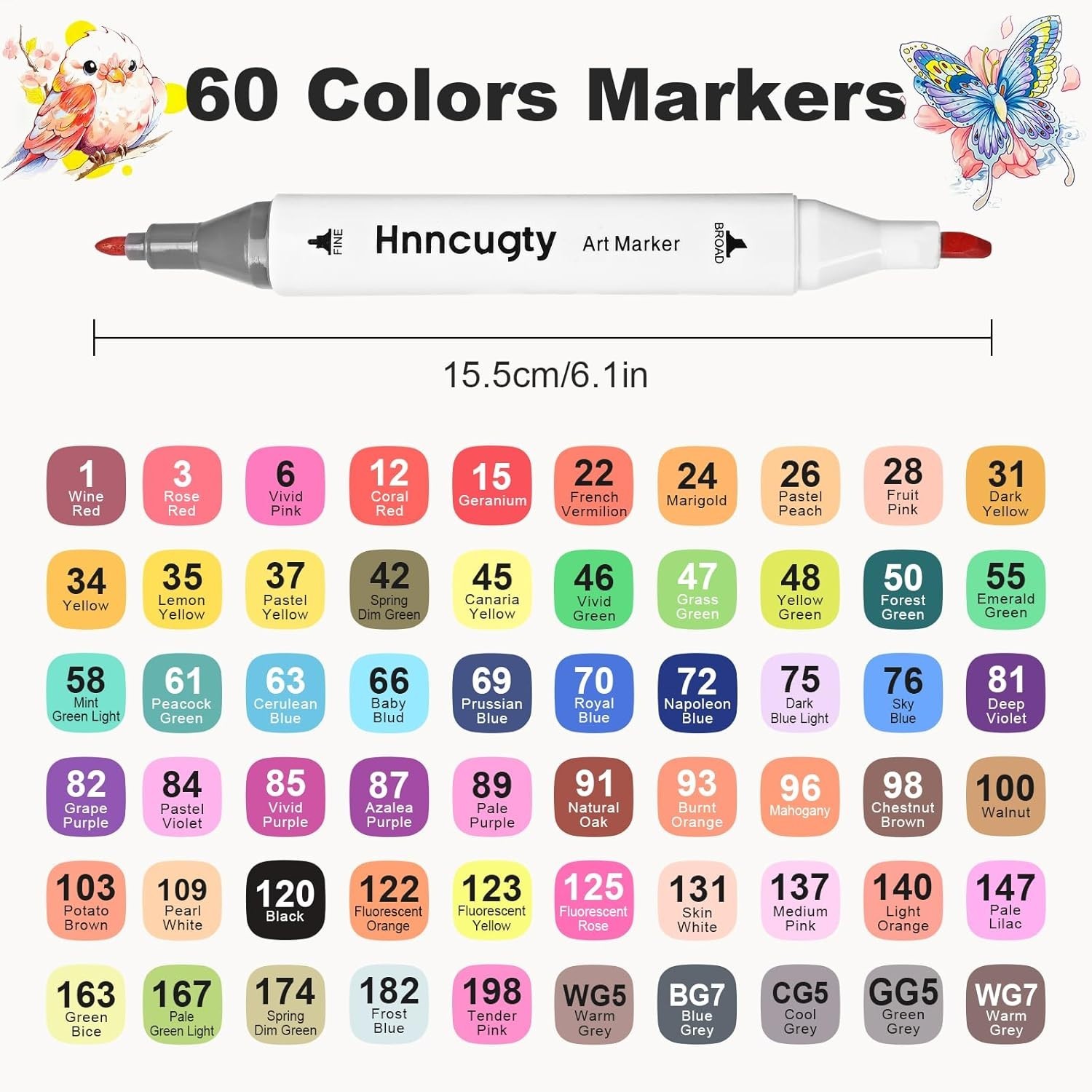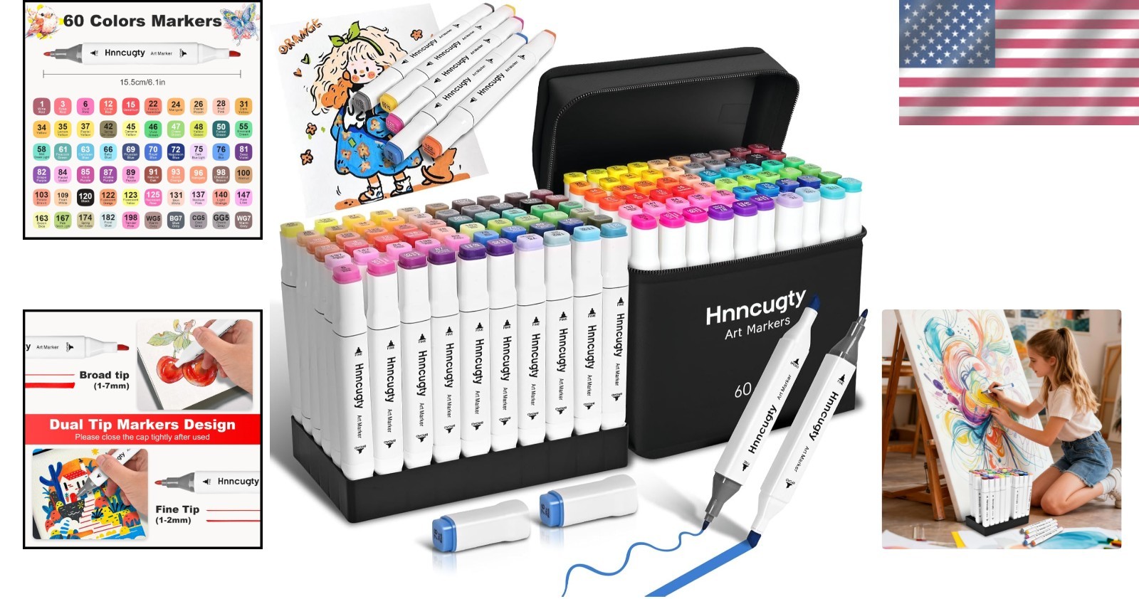 60-Color Alcohol Marker Set with Dual Tips Carrying Case - Perfect for Artists