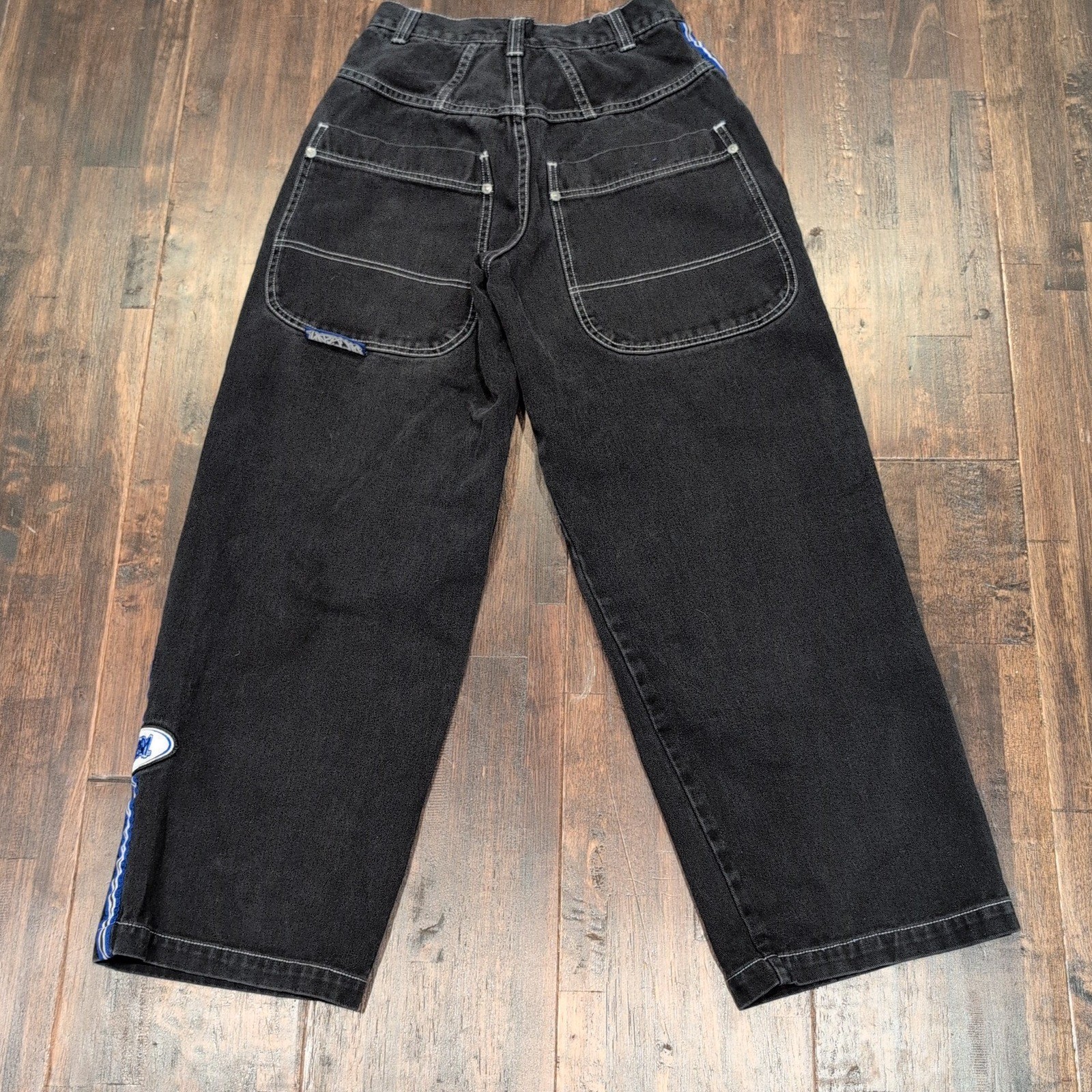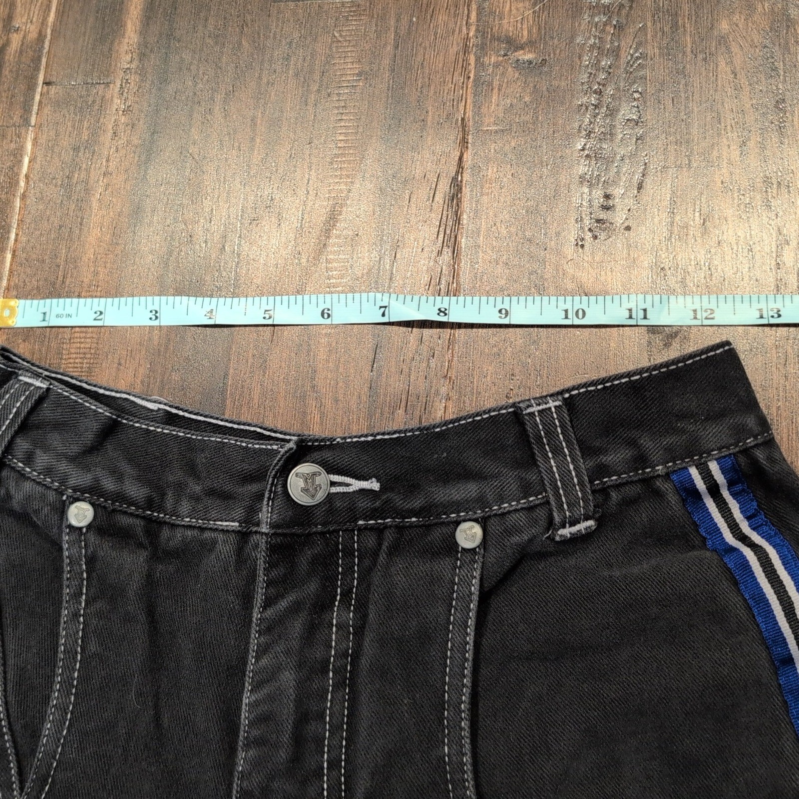 MacGear Jeans Black Denim Youth 18 Fits 25x28 Blue Stripe Wide Baggy Skate Y2K