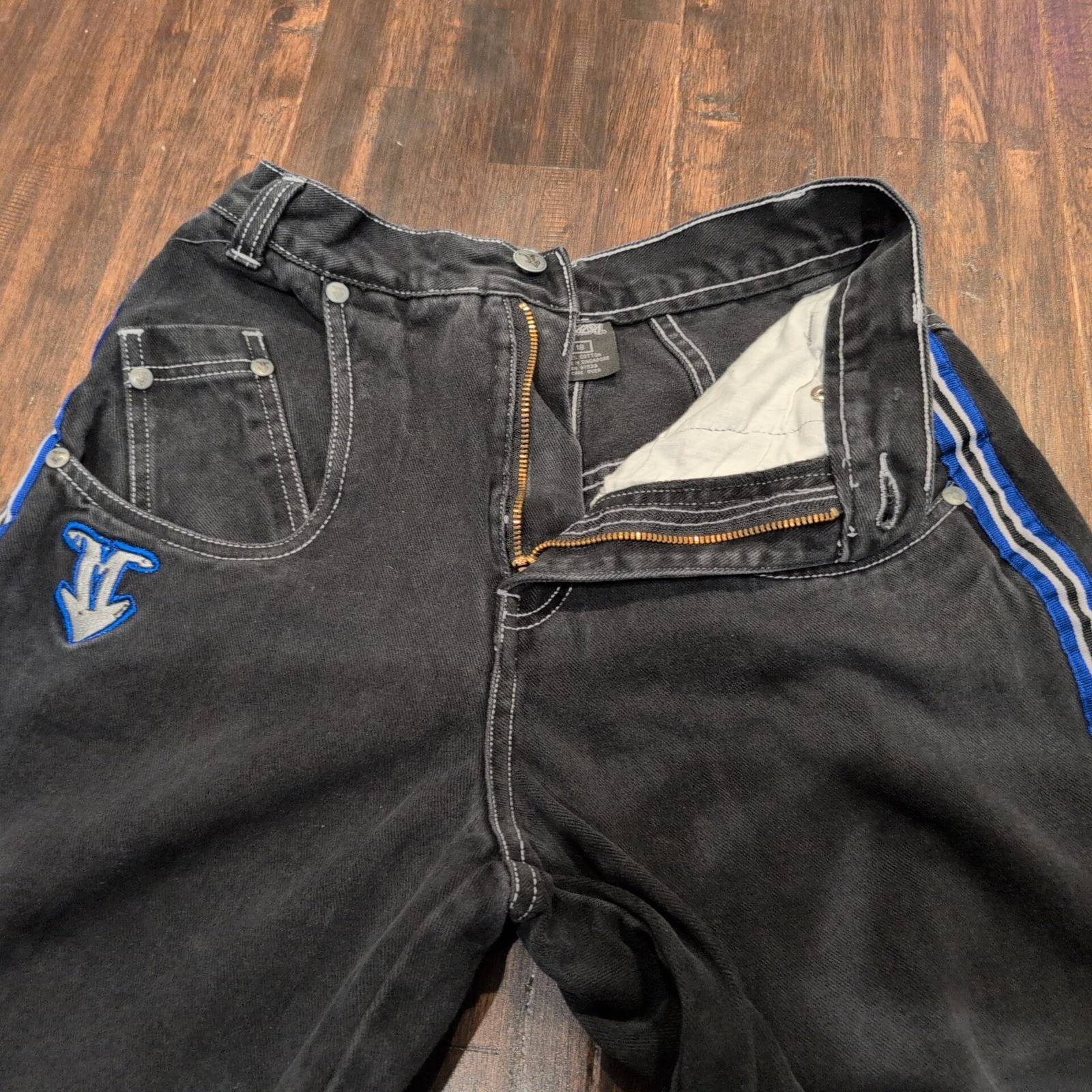 как выглядит MacGear Jeans Black Denim Youth 18 Fits 25x28 Blue Stripe Wide Baggy Skate Y2K фото