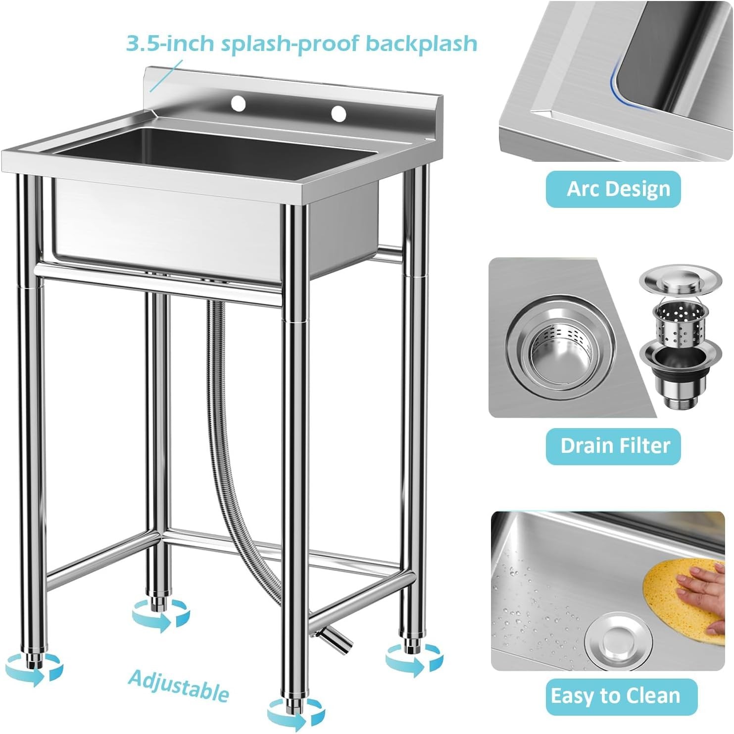 как выглядит 28"x20"x40" Commercial Kitchen Sink Single Bowl Stainless Steel Utility Sink фото