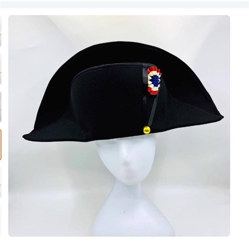 2025 Napoleon French Captain Bicorne Hat Woolen Cap Cosplay Accessories Gift New
