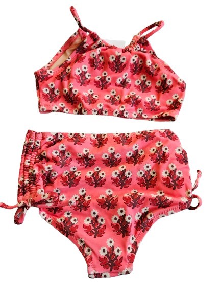 как выглядит Crewcuts Girls Floral Bow Tie 2 Piece Swimsuit, 2, Red/ Pink фото