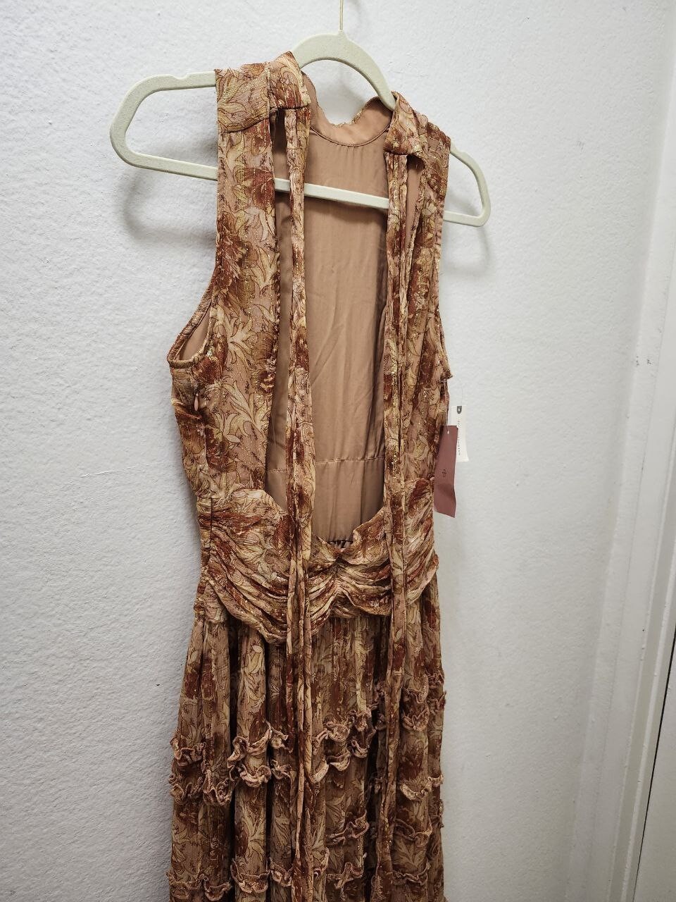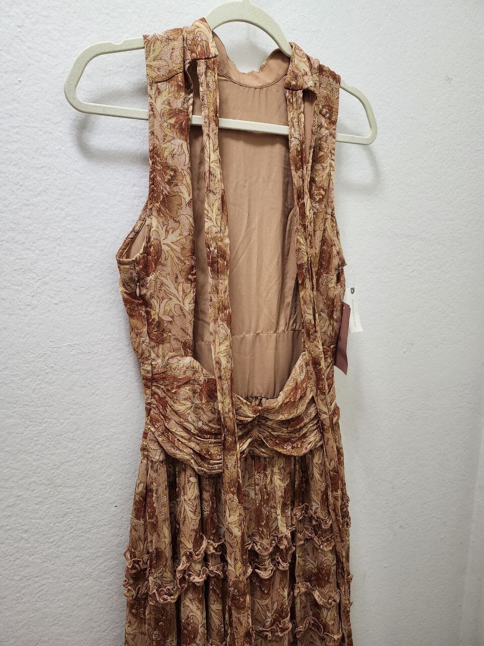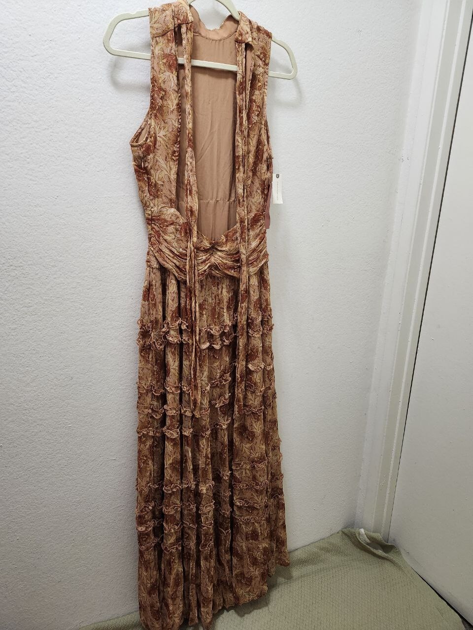 как выглядит NWT 348 BHLDN By Anthropology Juniper Tiered Backless High-Neck Gown Size 8 фото