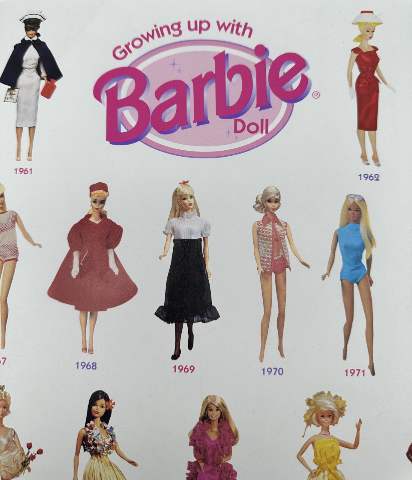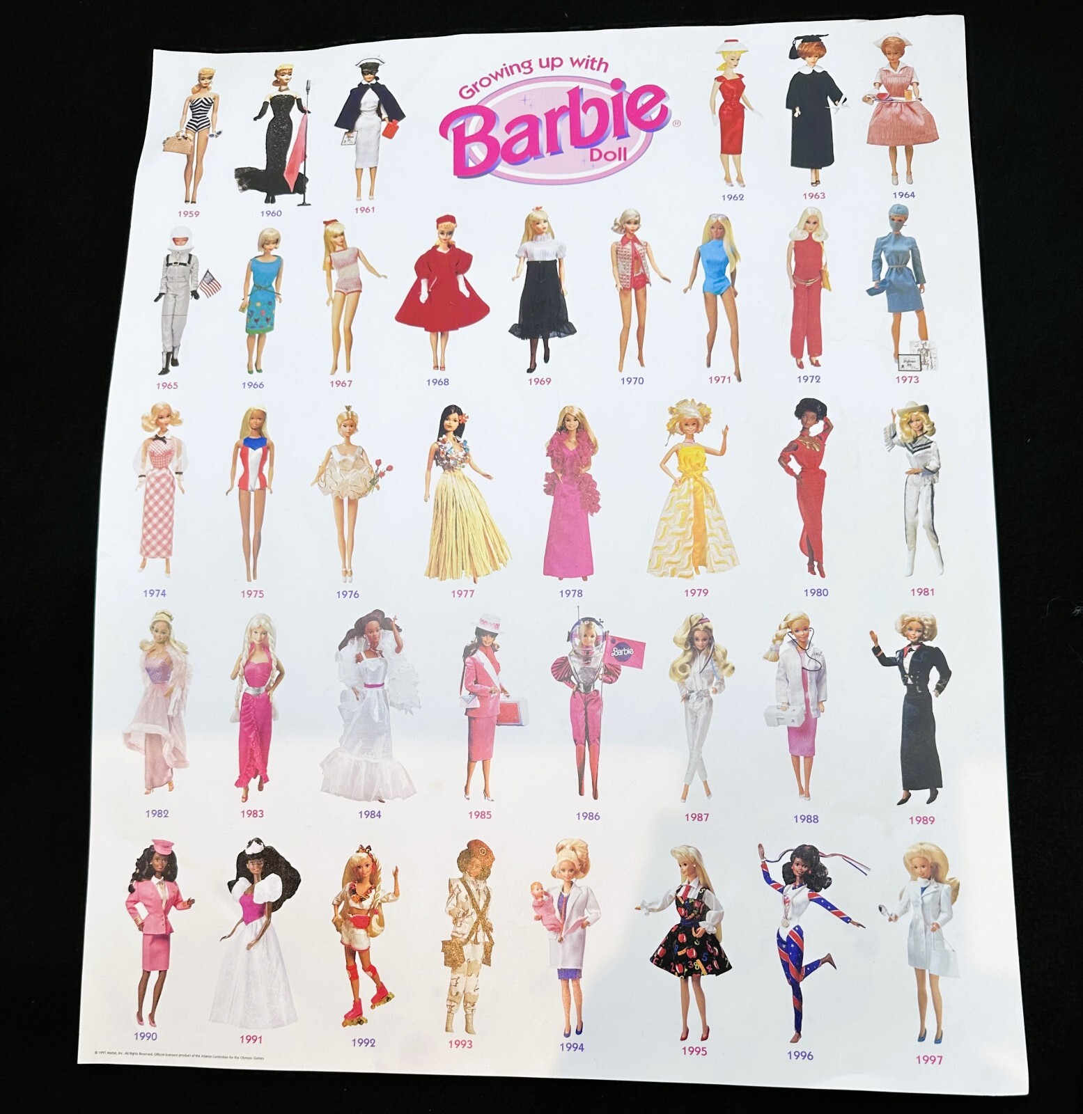 Growing Up With Barbie Doll Poster 1997 Barbie Doll 16x20 Barbies 1959-1997