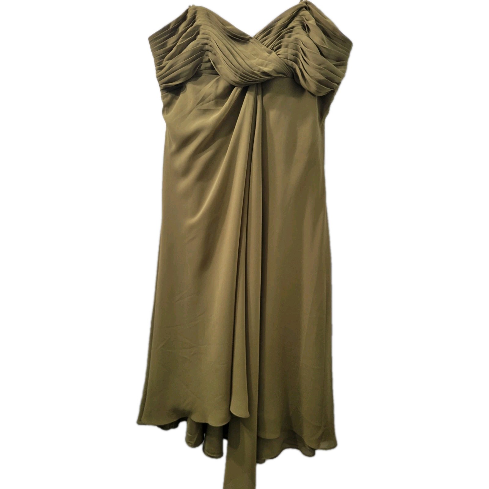David s Bridal Green Olive Chiffon Dress With Removable Straps Size 12