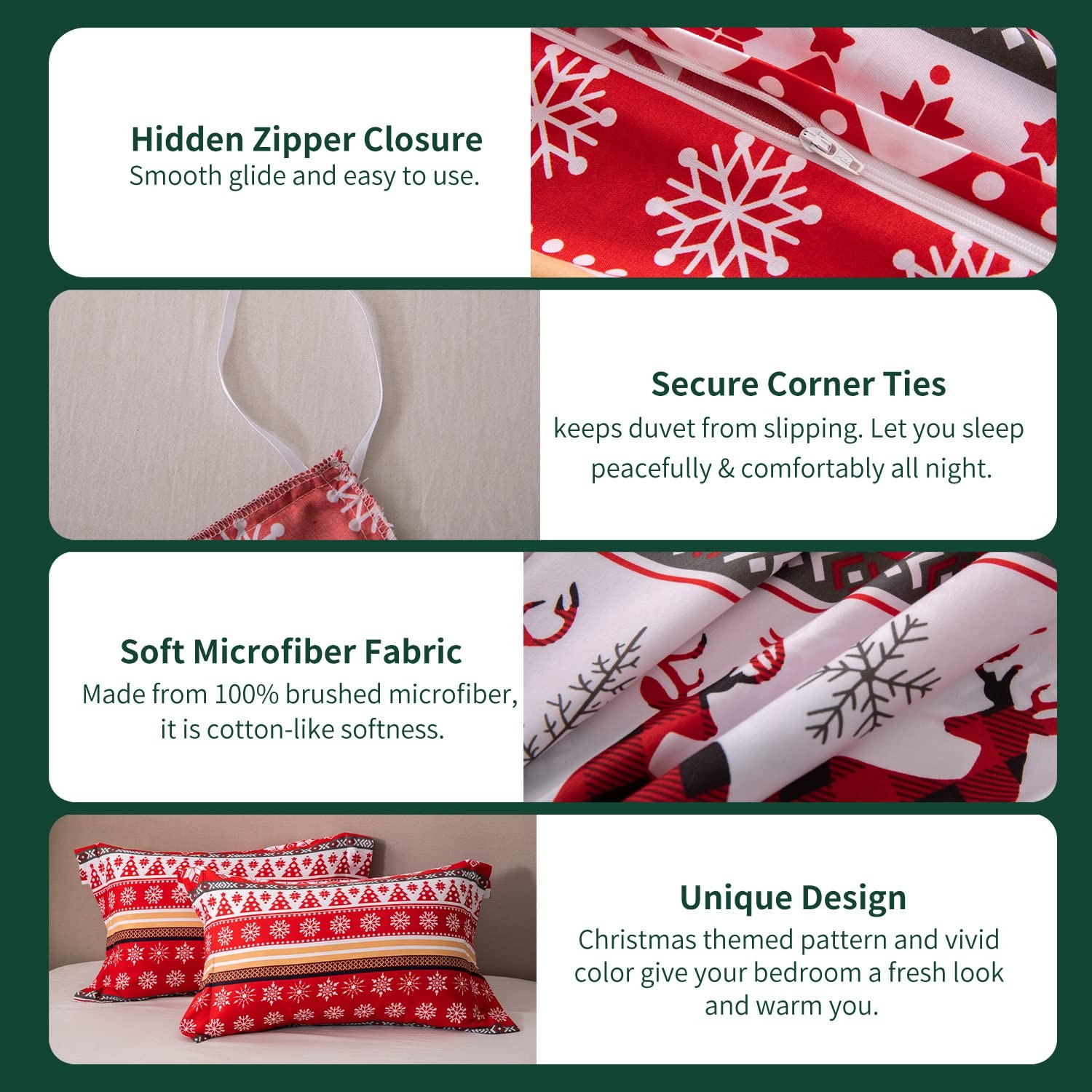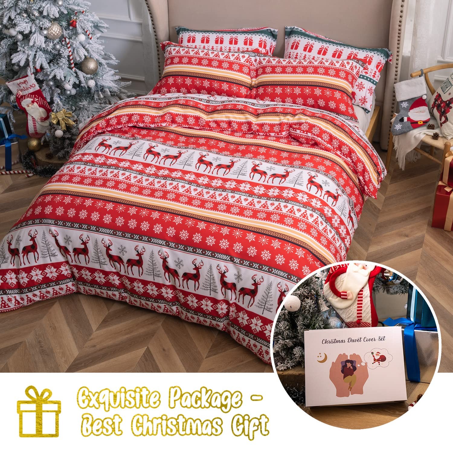 Christmas Duvet Cover Set - 100 Brushed Microfiber Snowflake Reindeer Printe...
