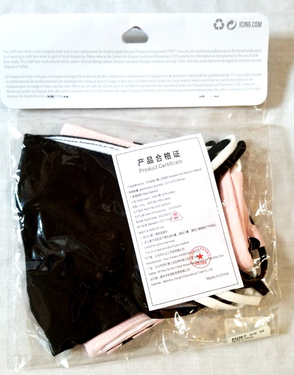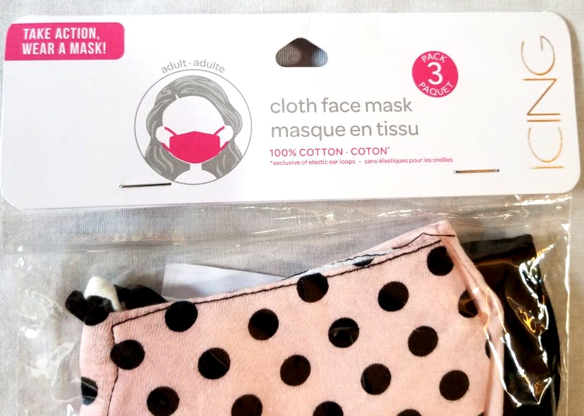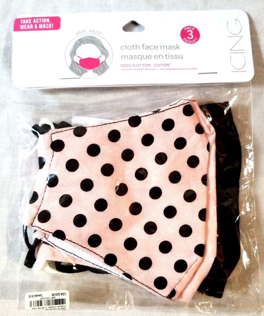 Pack of 3 100 Cotton Face Mask Reusable Washable Face Cover Men Women NIP Icing