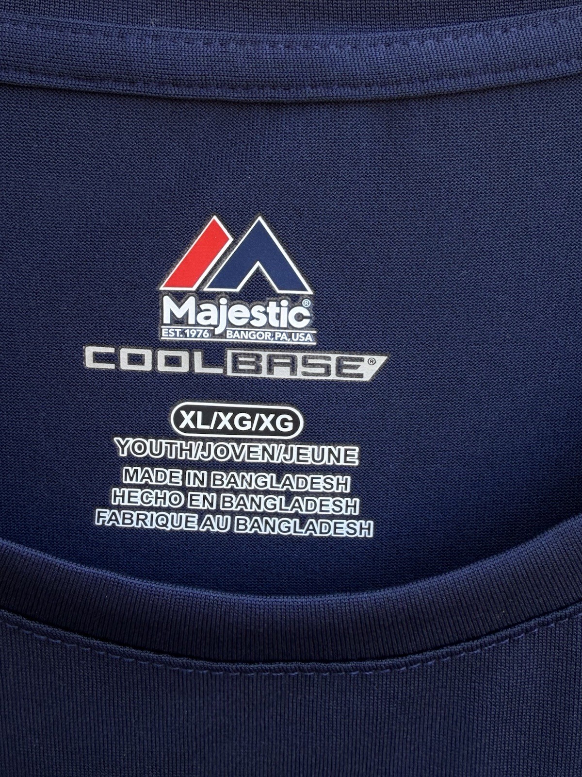 как выглядит Majestic Shirt Youths XL Navy Evolution Tee Short Sleeve Crewneck Cool Base NWOT фото