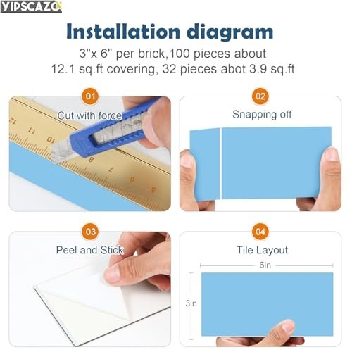 3D Peel and Stick Backsplash Tiles - 3x6 Inch PVC Wall Decor for Kitchen, Bath,