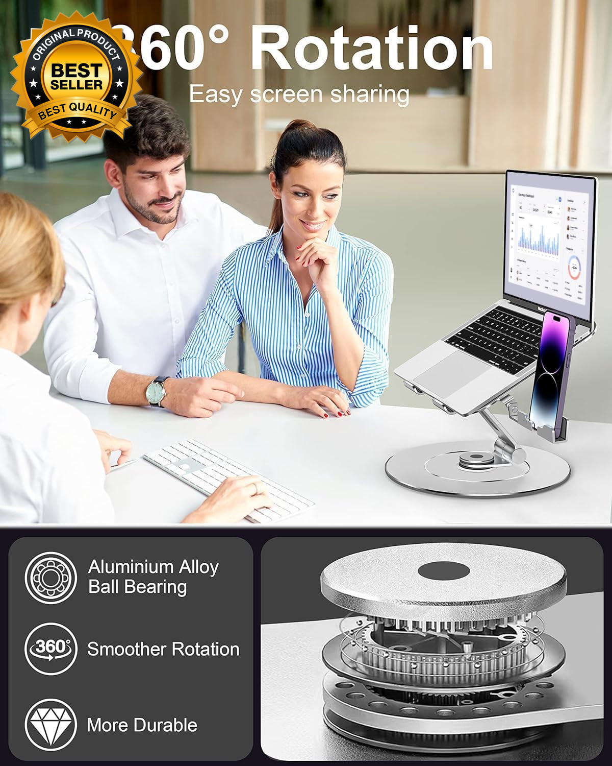Laptop Stand with Phone Holder Adjustable Laptop Stand with 360 Rotating Base